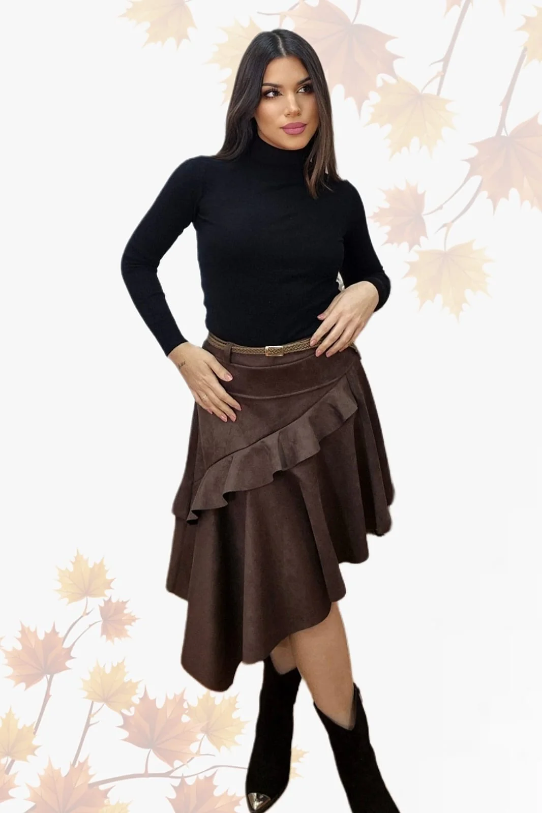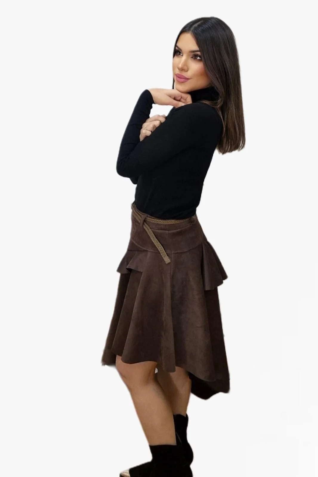 Falda Diagonal Volantes Marrón