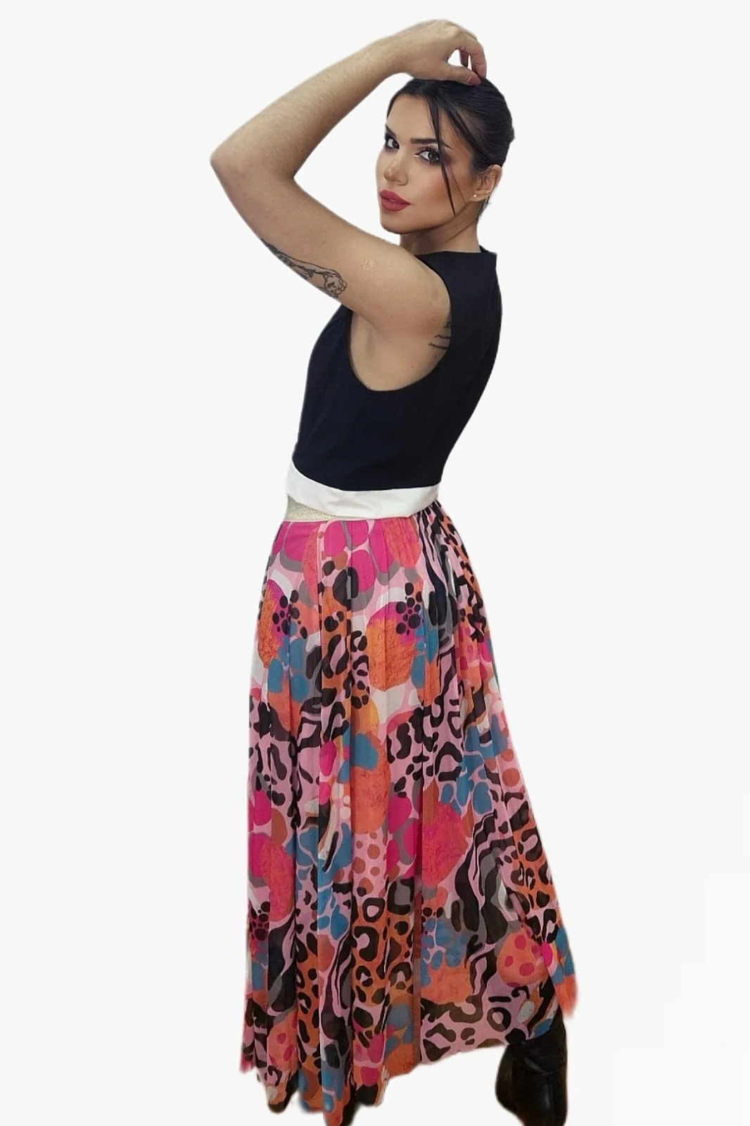 • Corte midi con vuelo elegante