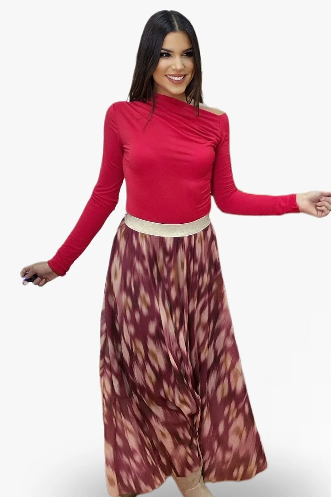 Sé el primero en valorar “Falda Print Difuminado Granate”