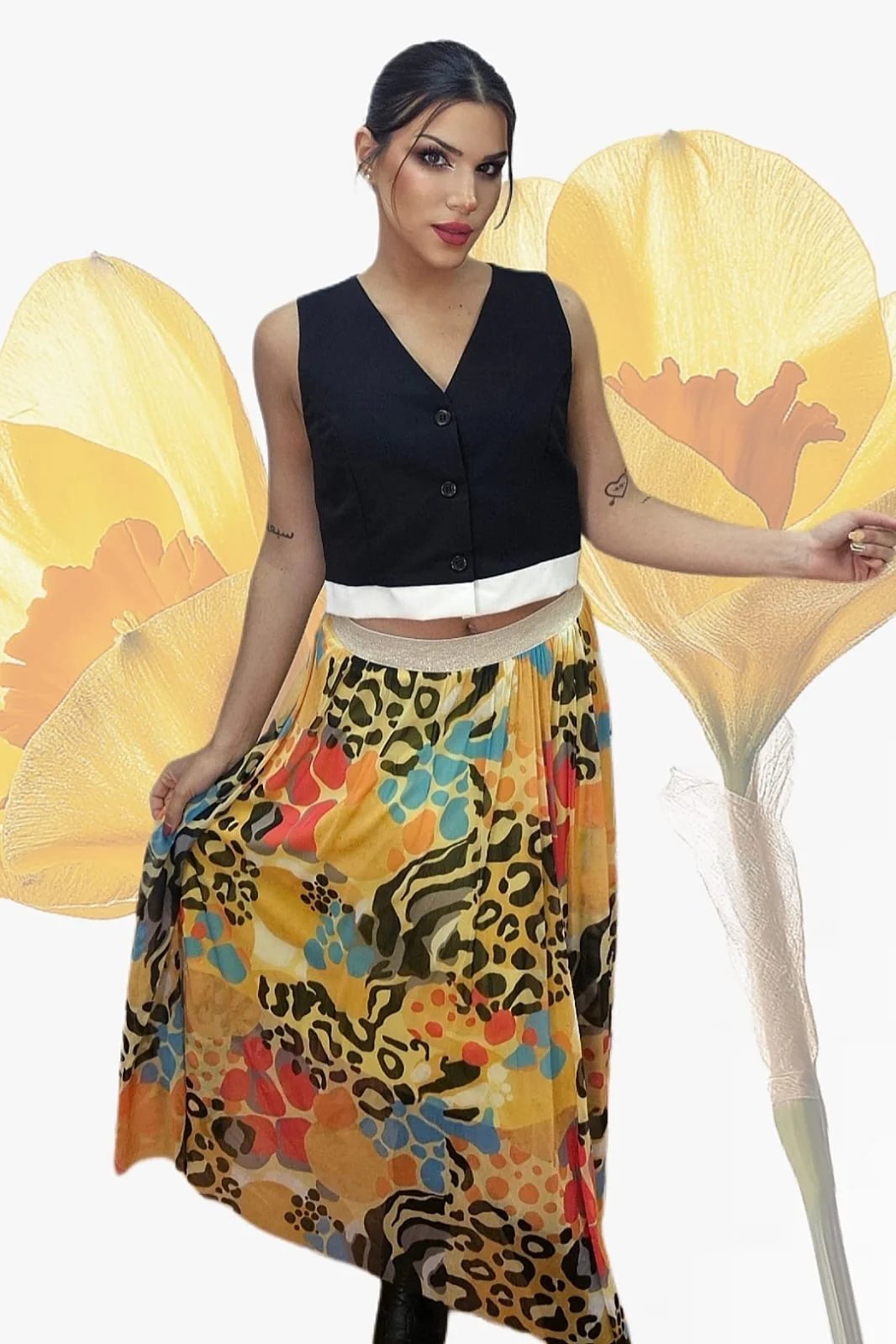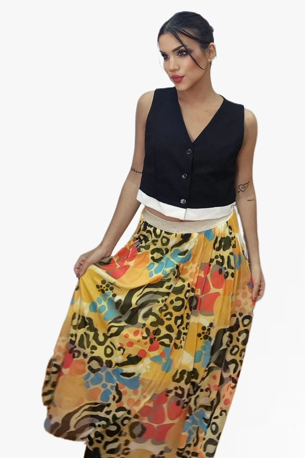 Una falda llamativa, ligera y con mucho movimiento, ideal para dar un aire diferente a tus looks más casual o de fiesta.