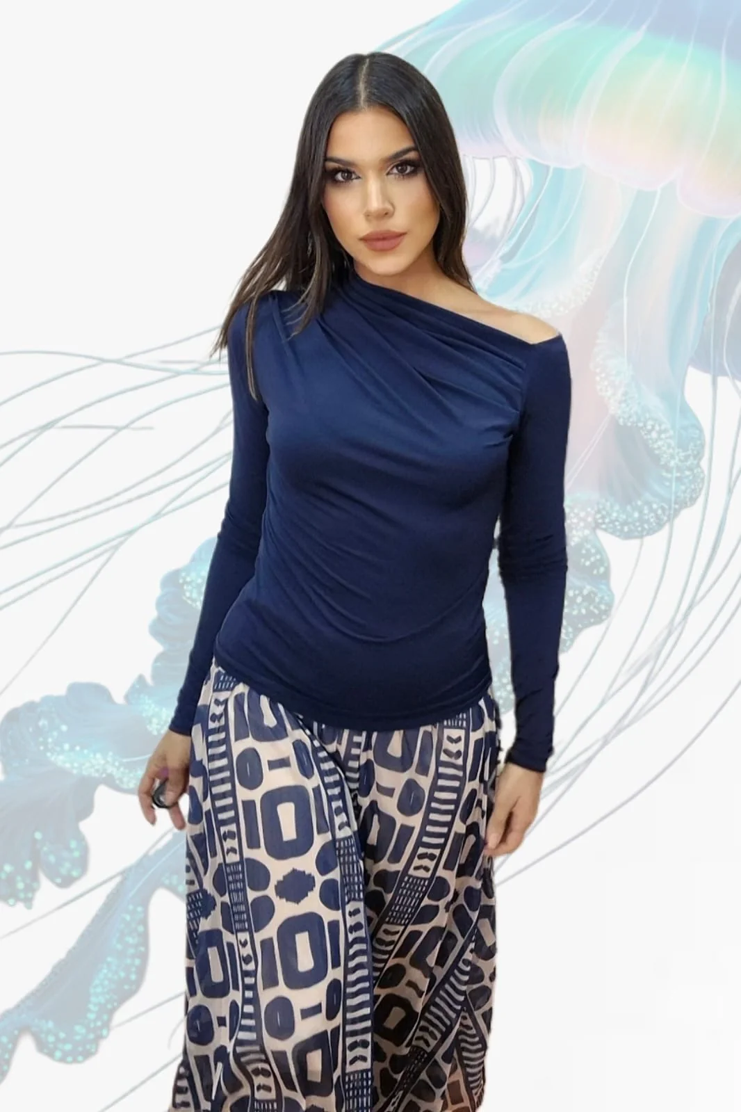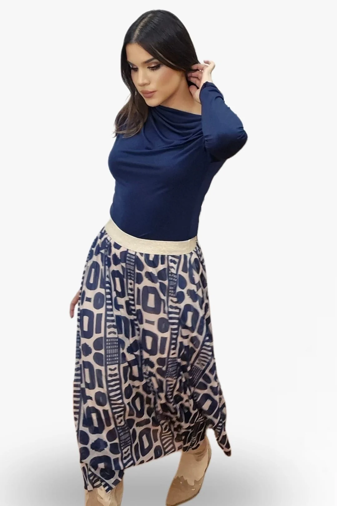Confeccionada en 100% poliéster, esta falda midi de tul destaca por su original estampado y la cintura engomada con brillo, que aporta un toque sofisticado y cómodo a la vez. Su diseño ligero y fluido crea movimiento con cada paso, convirtiéndola en la prenda estrella para dar personalidad a tus outfits.