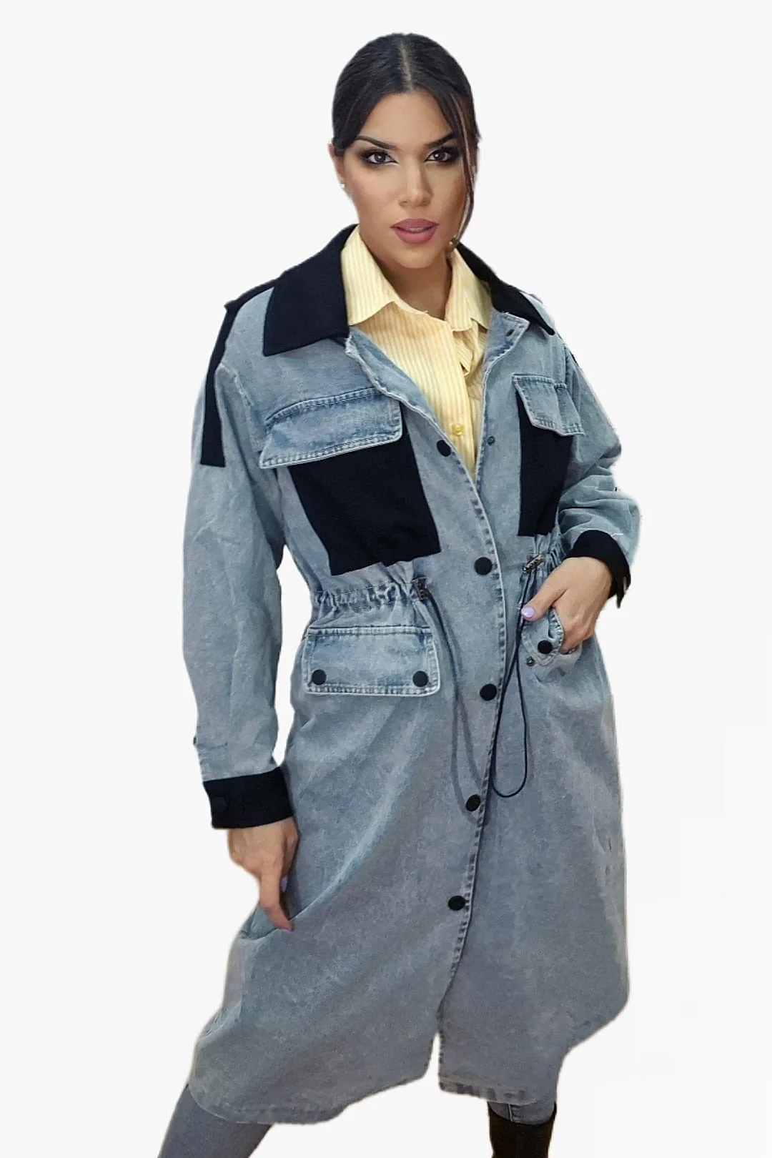 Gabardina vaquera bolsillos con cordón – Estilo urbano con actitud
