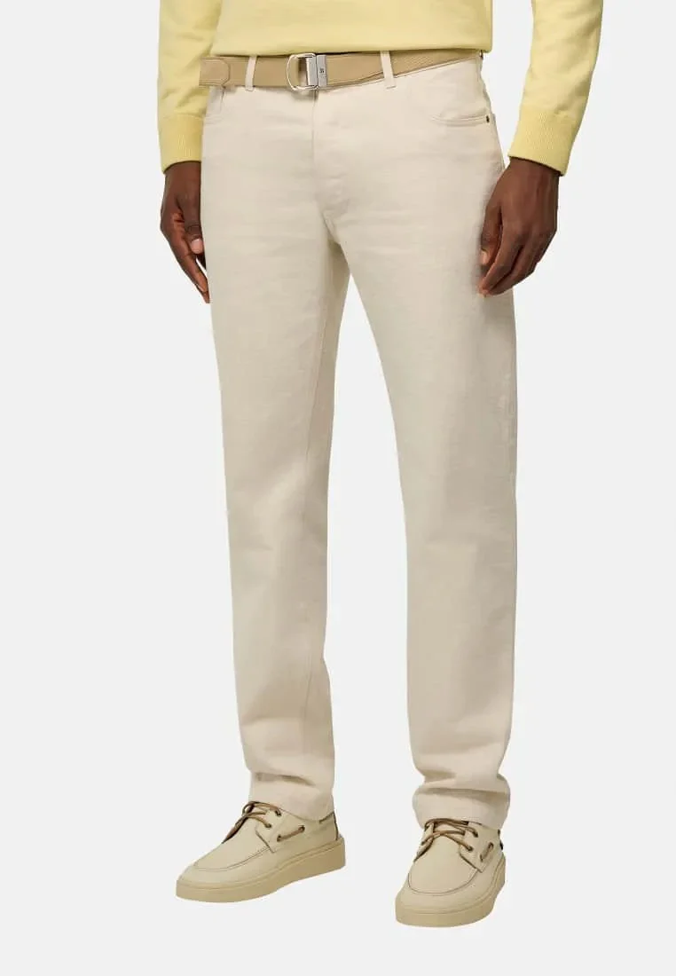 pantalón vaquero (jeans) de mezclilla color crema para hombre de la marca Boggi Milano.