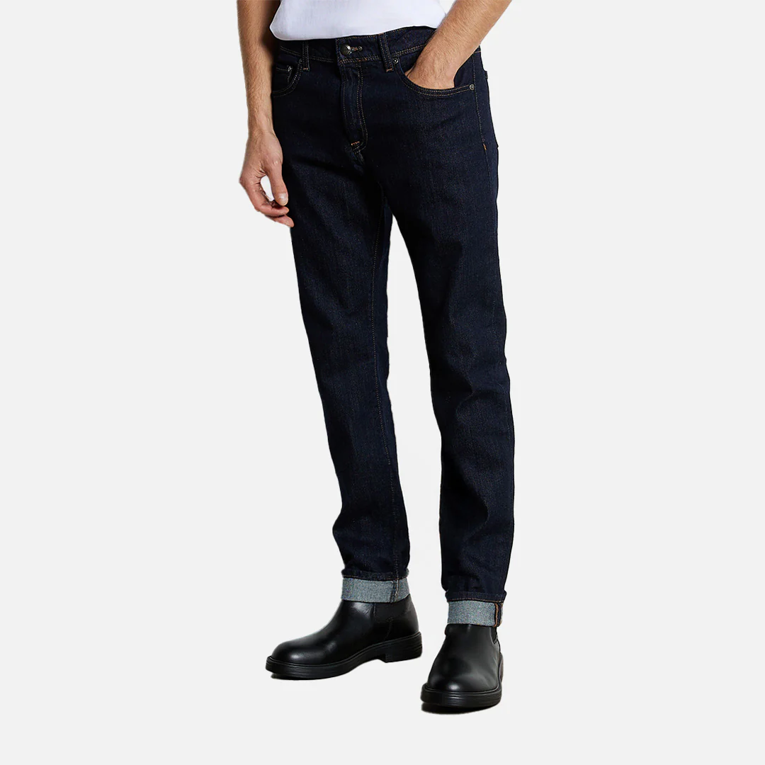Están confeccionados con un tejido natural elástico y flexible, tienen un diseño de cinco bolsillos con cierre de cremallera y un parche de cuero de marca.