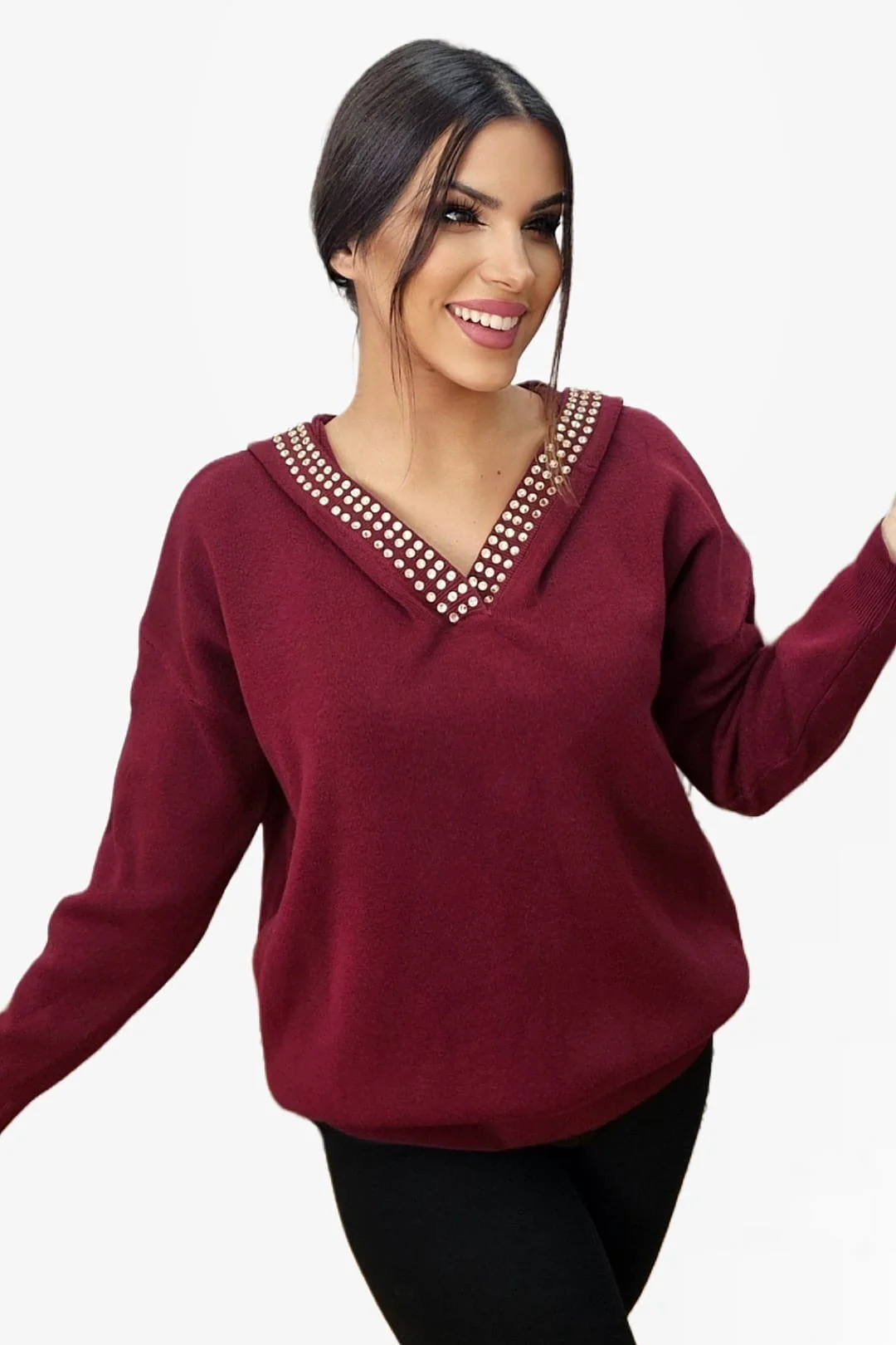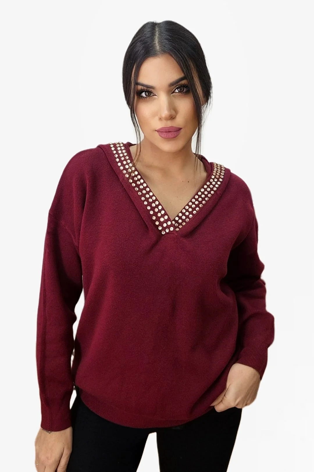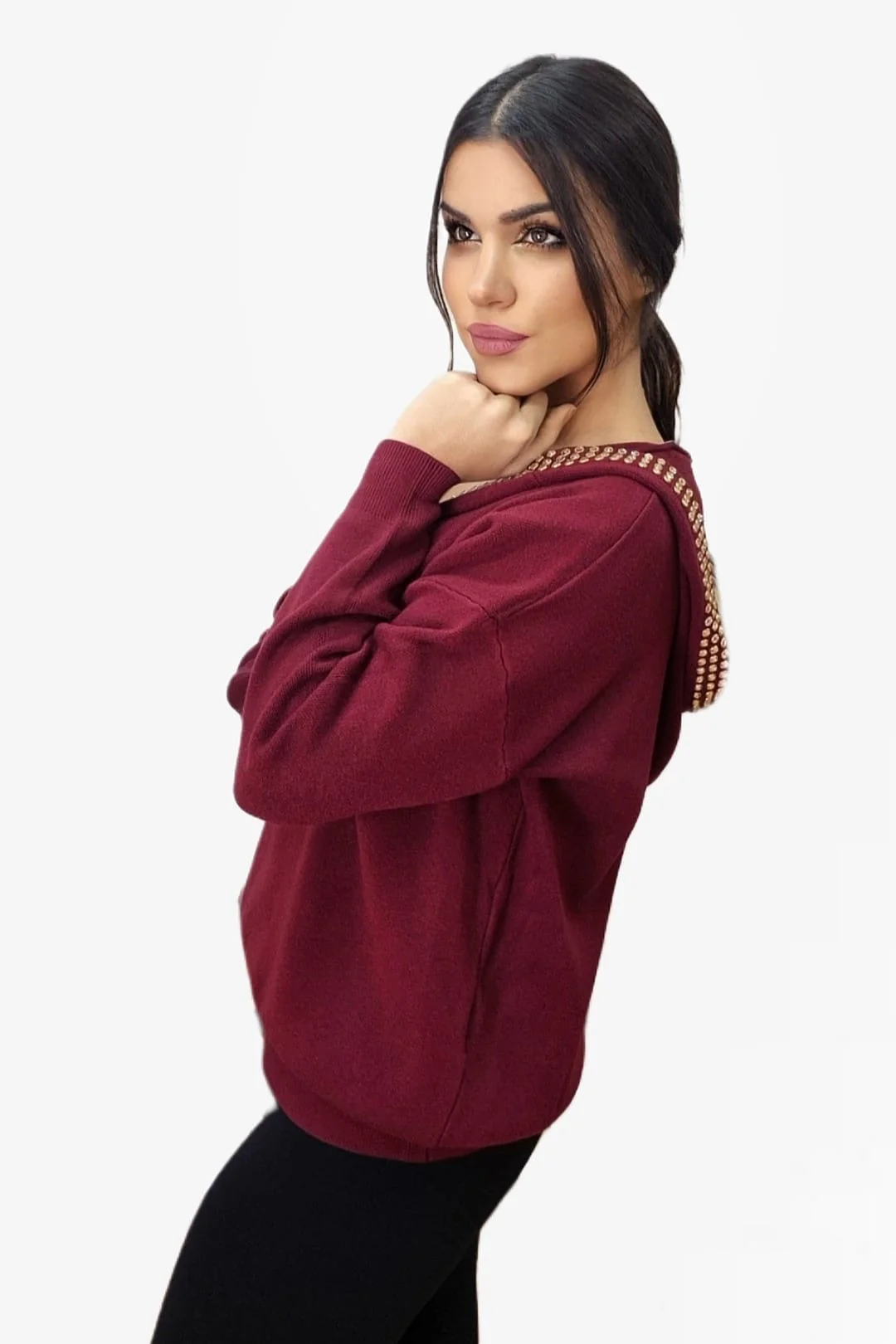 - Jersey con capucha decorada con tachuelas