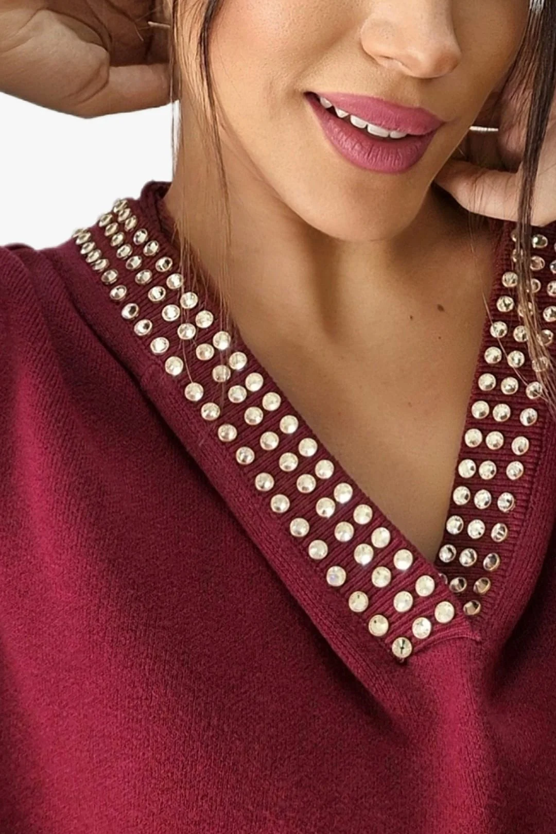 - Escote con detalle de tachuelas a juego
