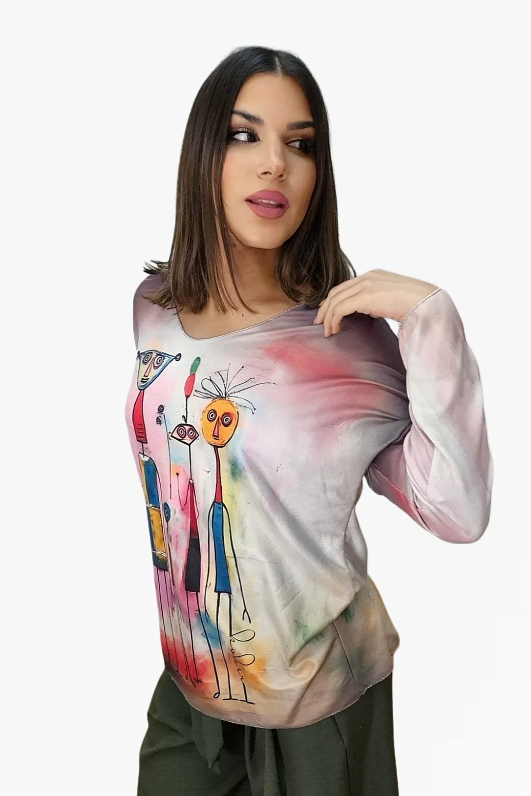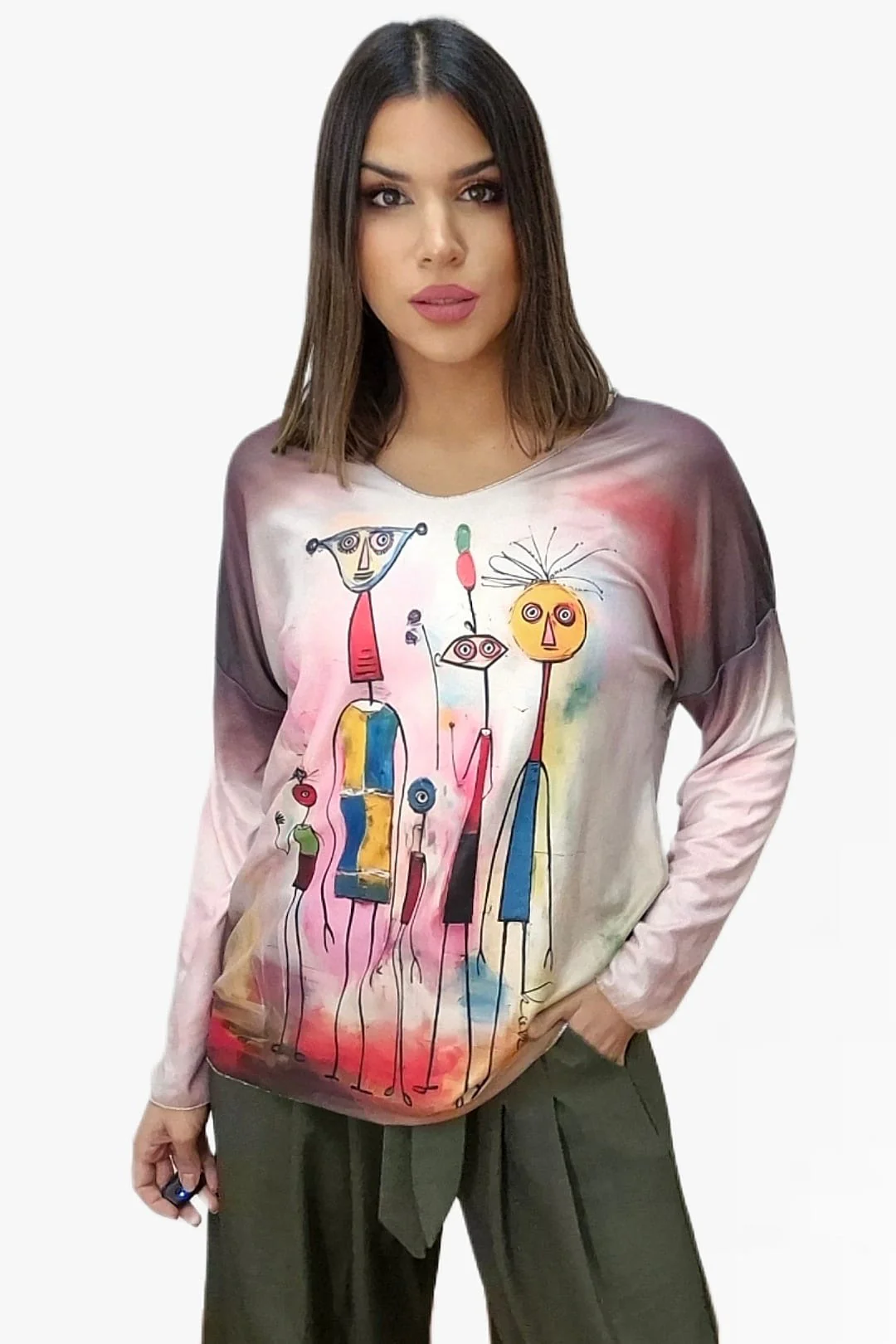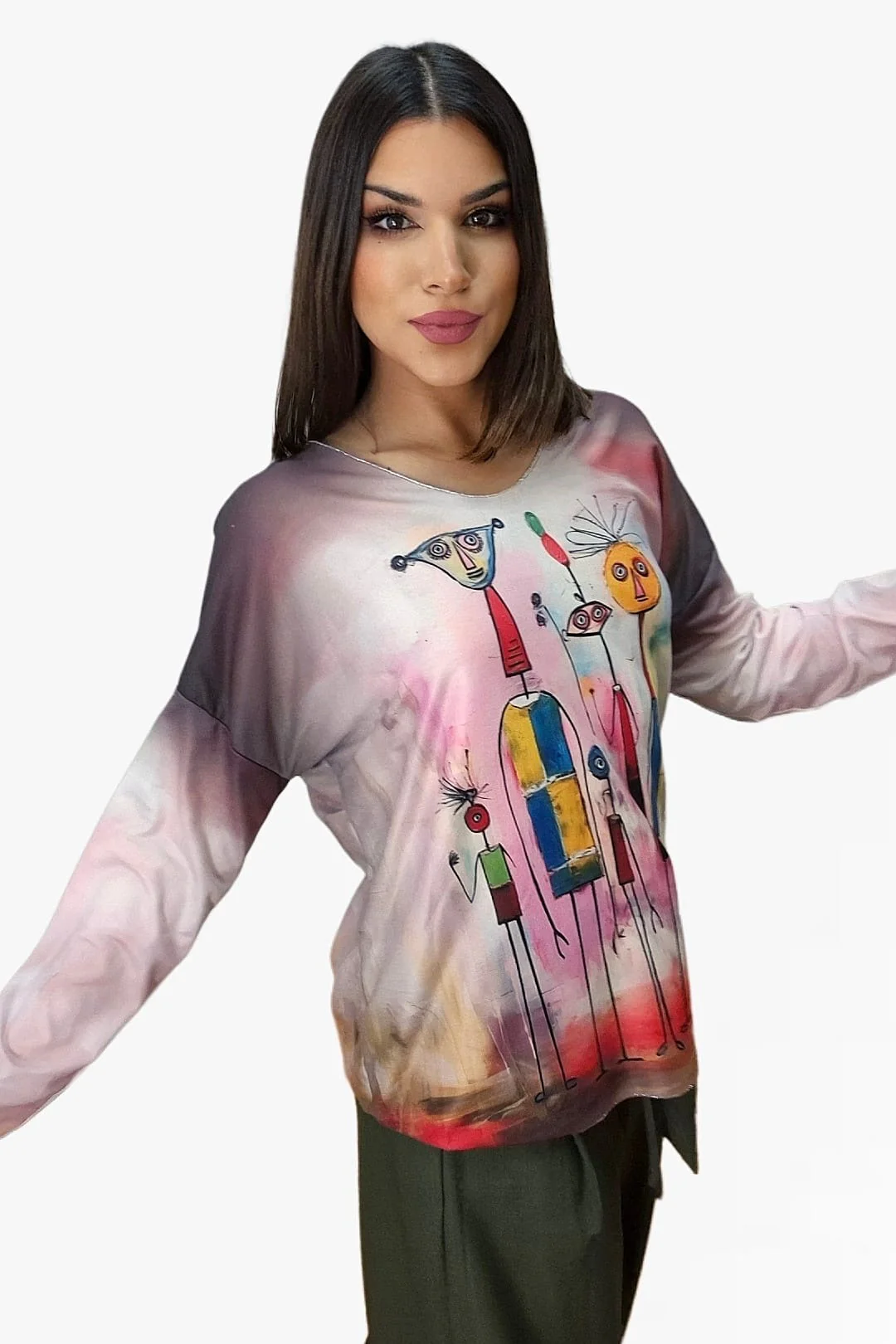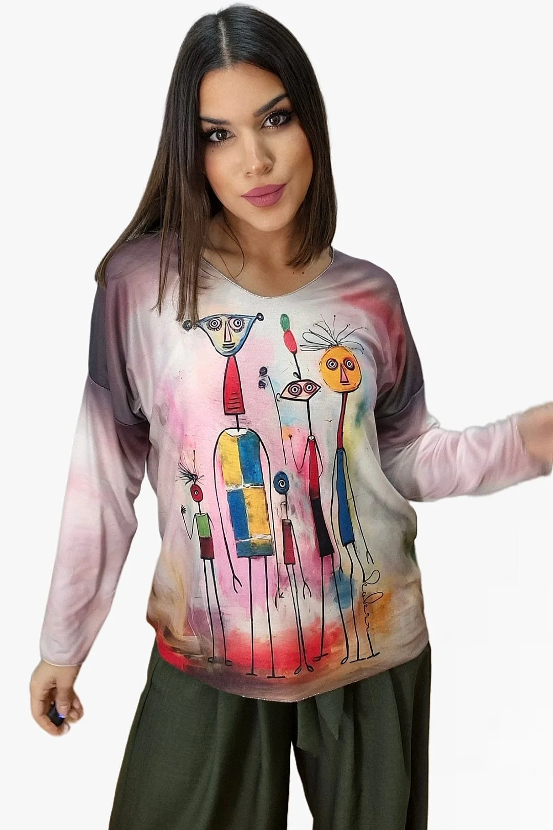 Dale un aire fresco y vibrante a tu armario con este jersey fluido de punto. Su diseño de manga larga y estampado colorido lo convierten en una prenda perfecta para quienes buscan comodidad sin renunciar al estilo. Ideal para combinar con vaqueros o leggings, este jersey es la opción perfecta para añadir un toque divertido y alegre a cualquier look. ¡Haz que tu outfit destaque con su originalidad!