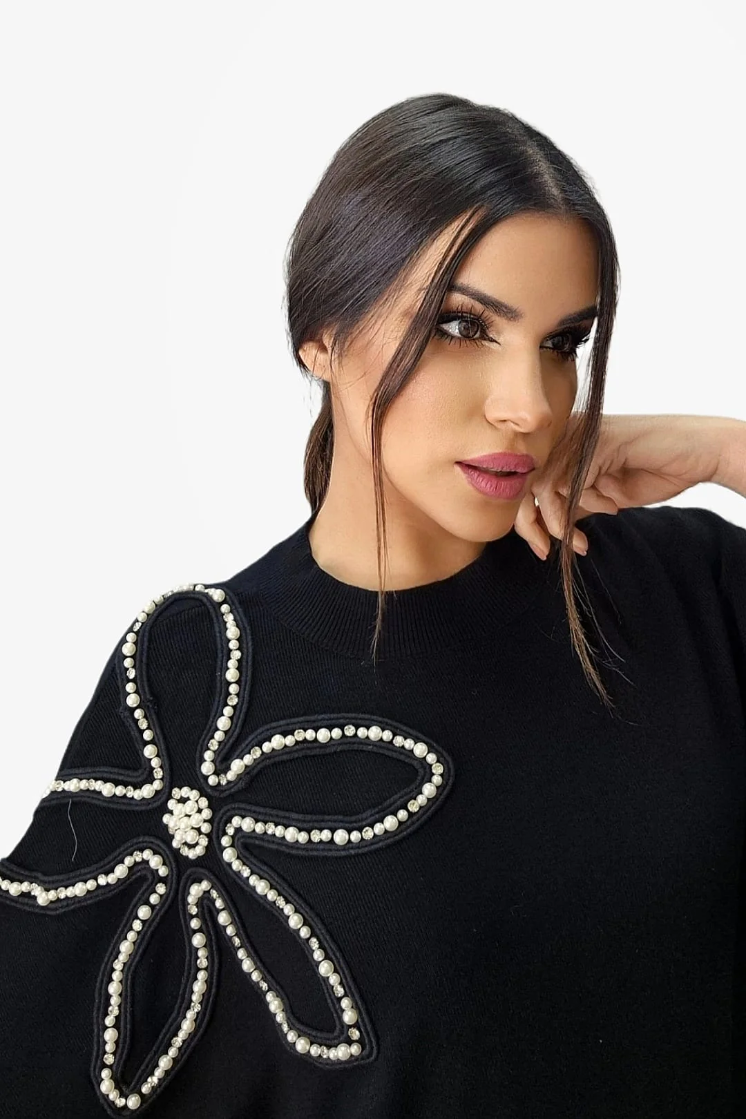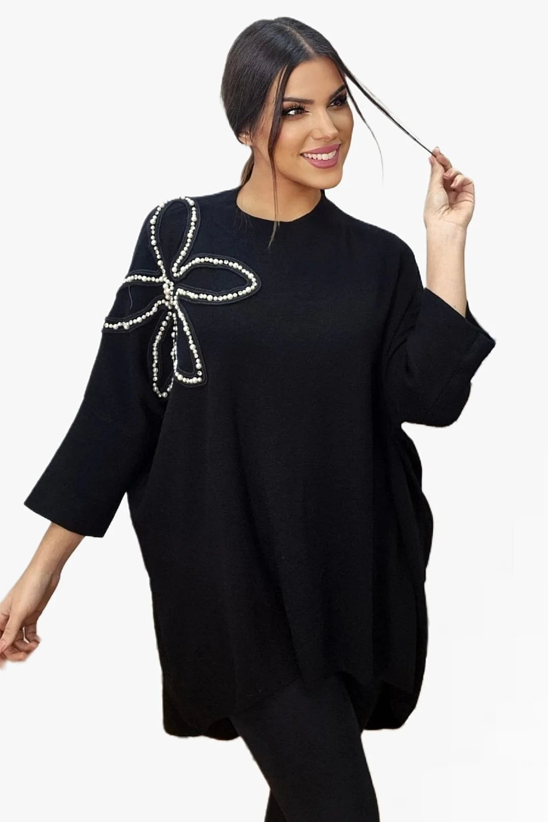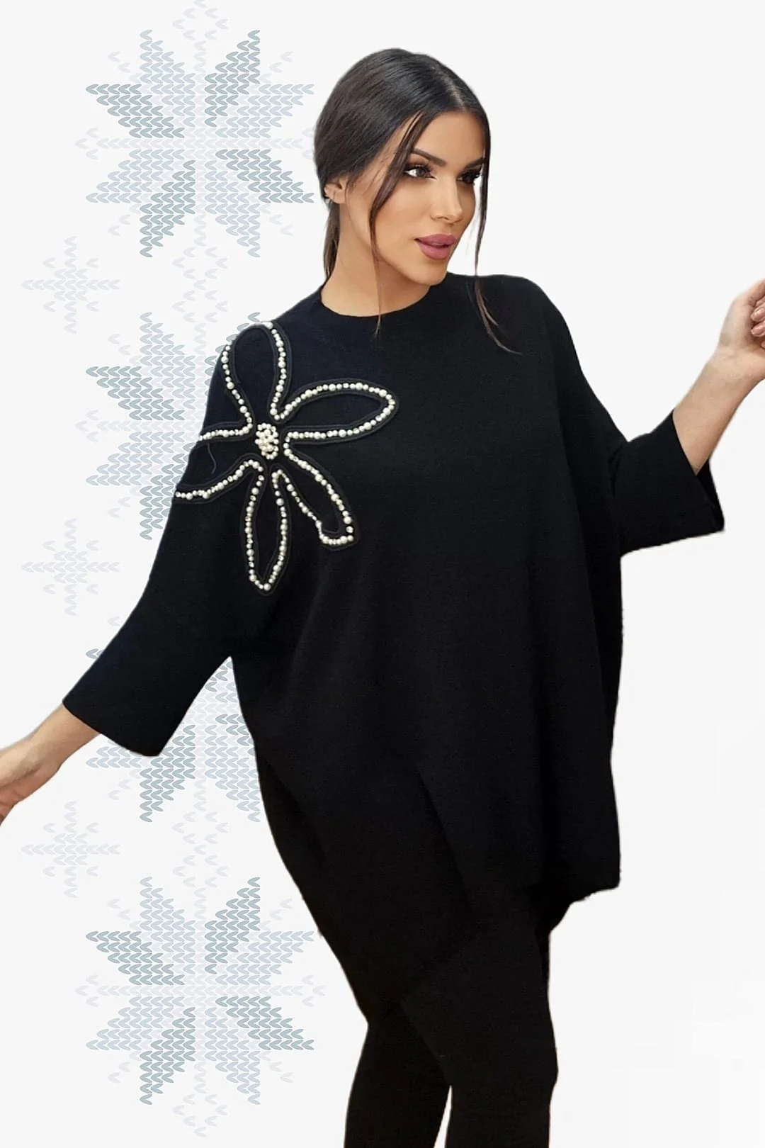 • Jersey amplio con aplicación decorativa de flor en perlas
