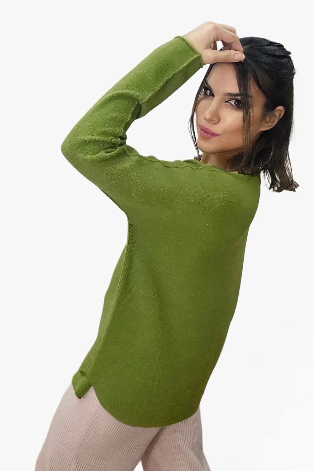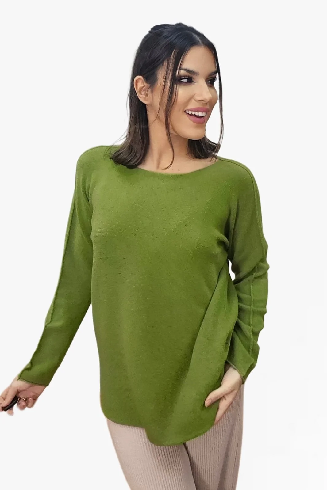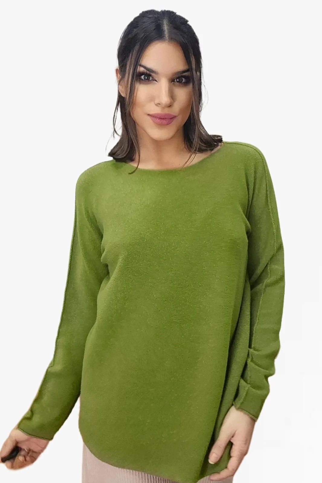 Jersey fluido de punto con manga larga, costuras gruesas y cuello caja.