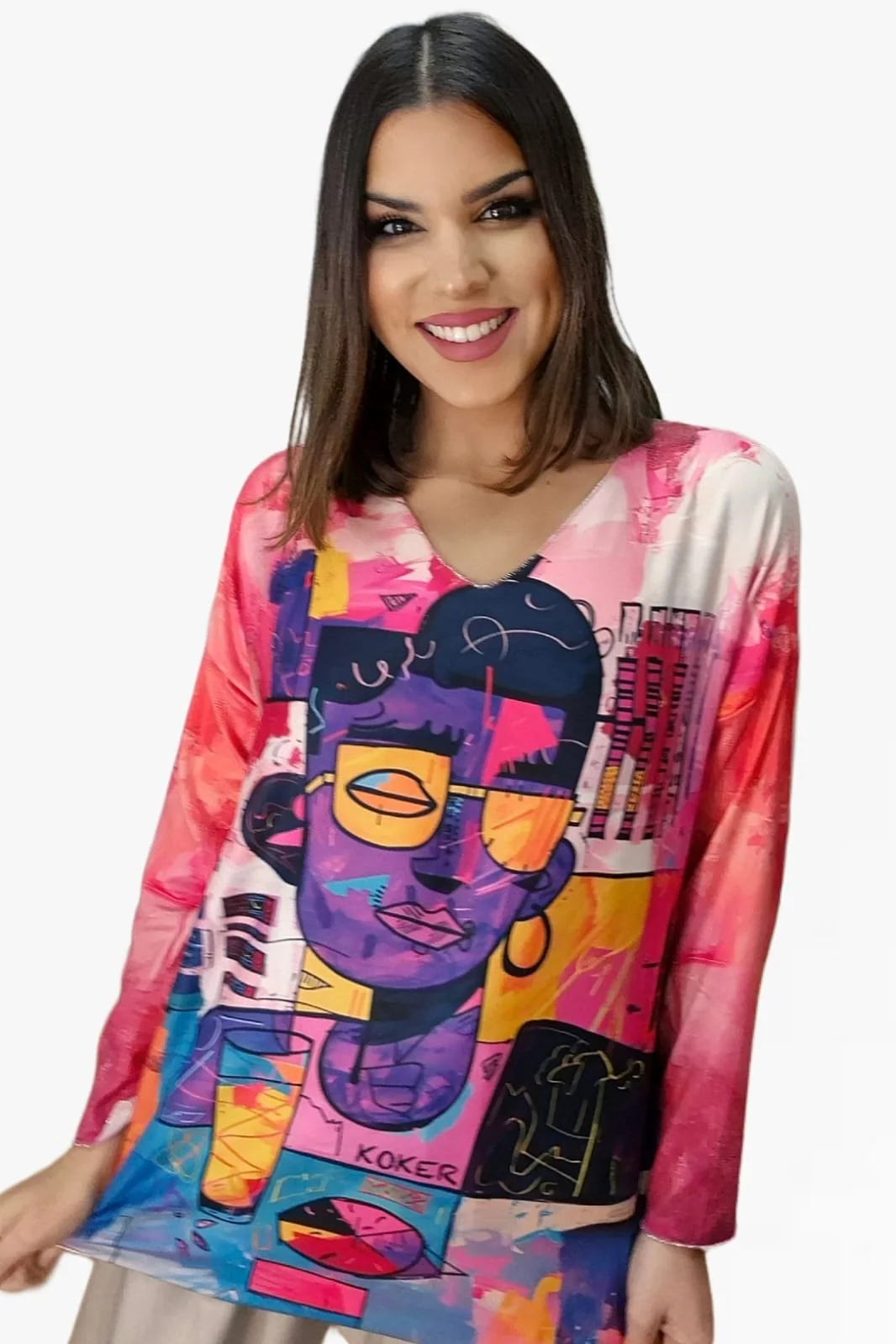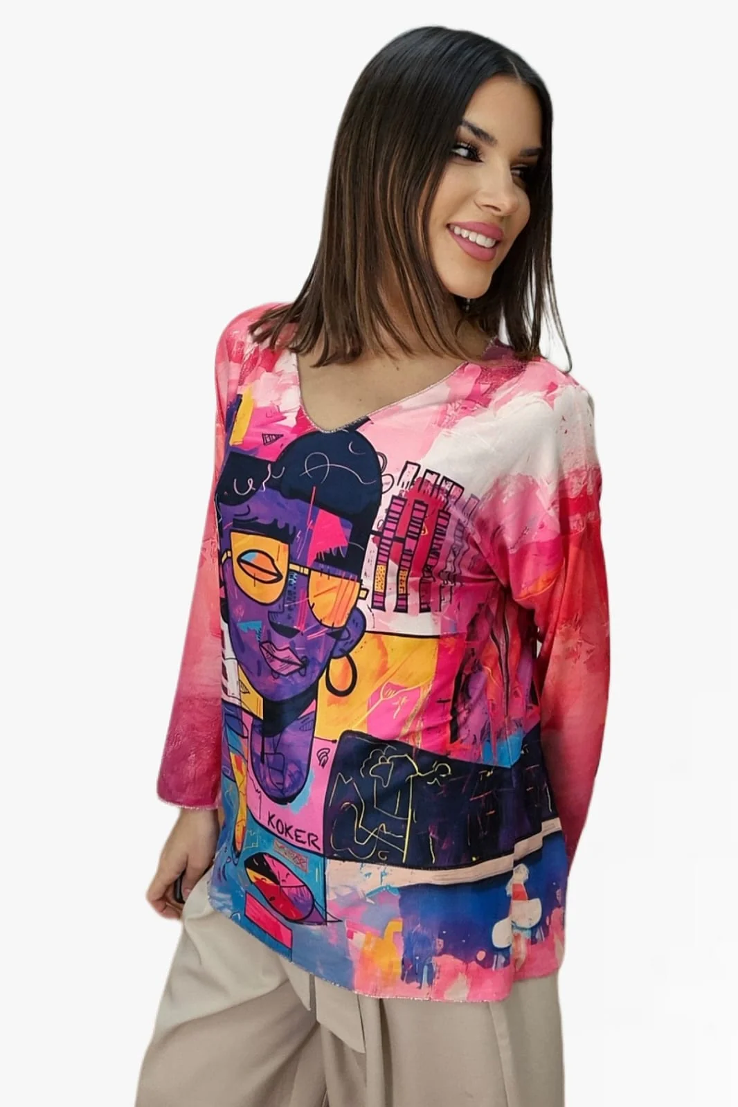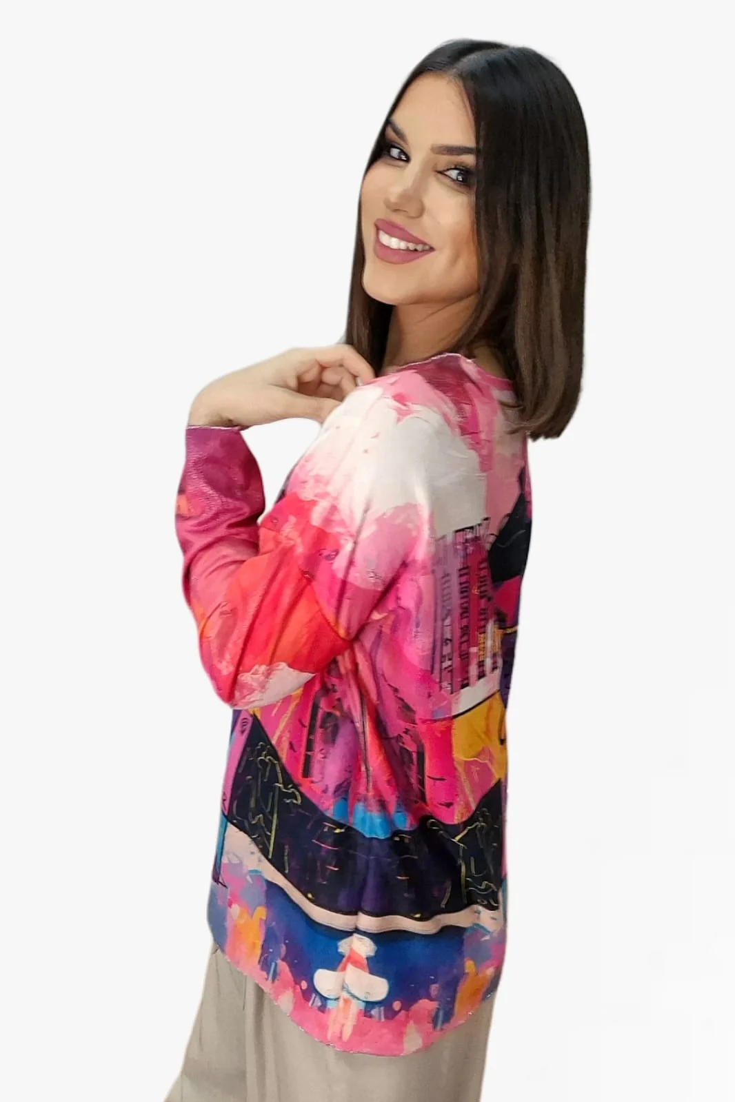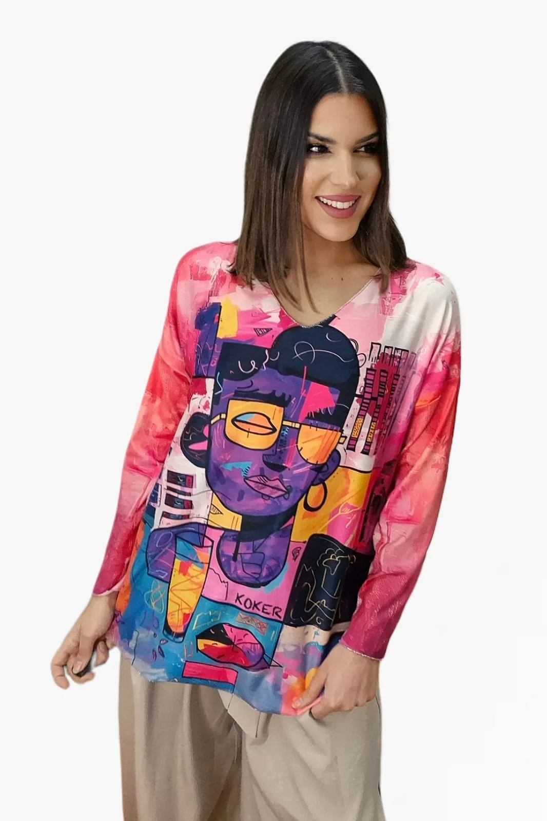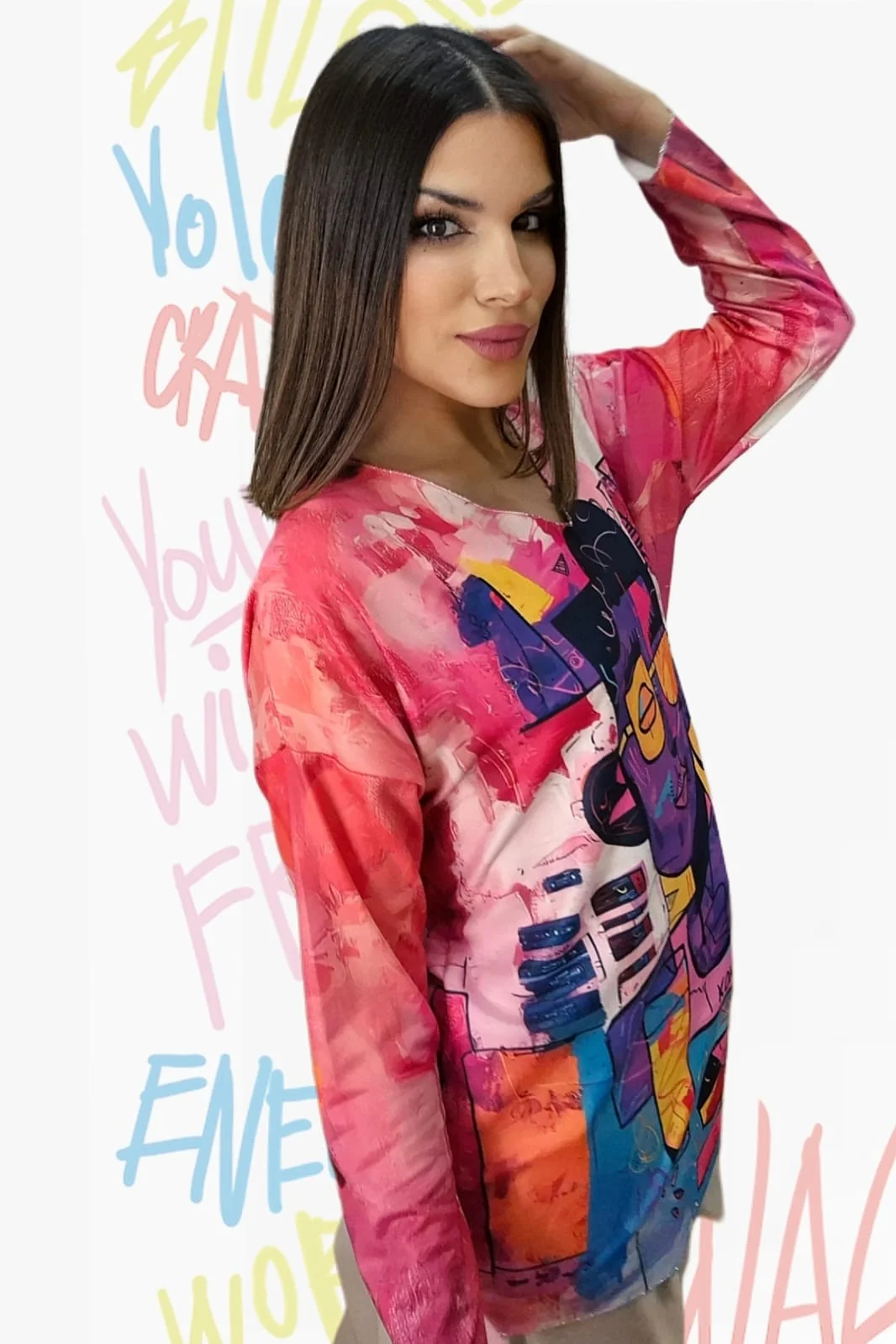 Dale un aire fresco y vibrante a tu armario con este jersey fluido de punto. Su diseño de manga larga y estampado colorido lo convierten en una prenda perfecta para quienes buscan comodidad sin renunciar al estilo. Ideal para combinar con vaqueros o leggings, este jersey es la opción perfecta para añadir un toque divertido y alegre a cualquier look. ¡Haz que tu outfit destaque con su originalidad!