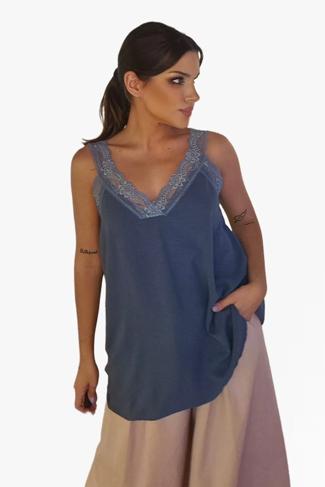 • Camiseta tipo lencera con tirantes anchos de encaje