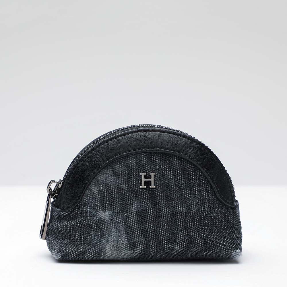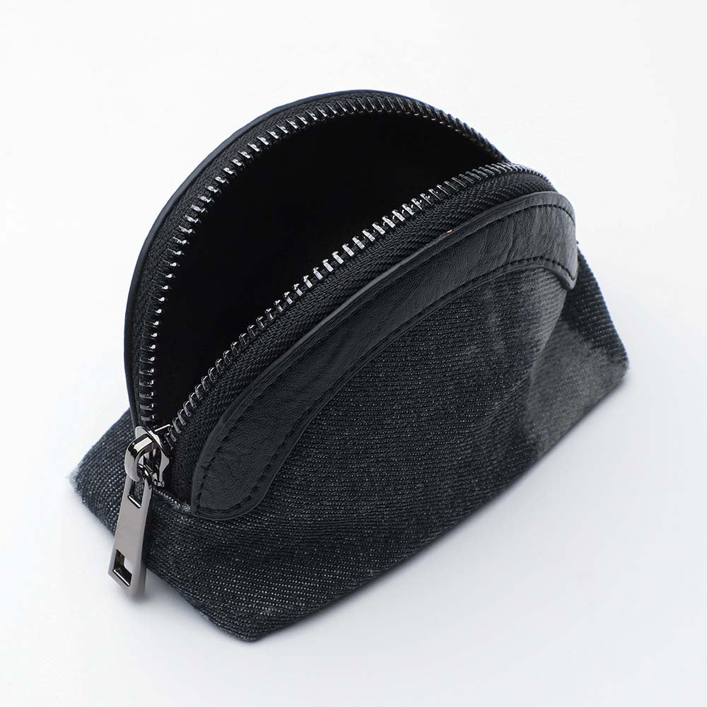 Monedero Humana Chia de color negro. Monedero de tela negra y ecocuero del mismo color en el cierre.