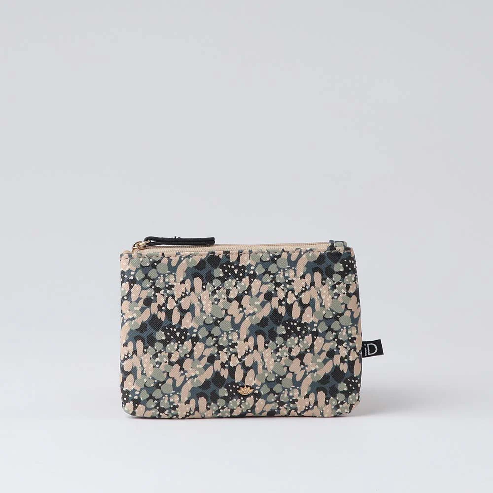 Monedero iD Vesta verde.Monedero de ecocuero estampado.