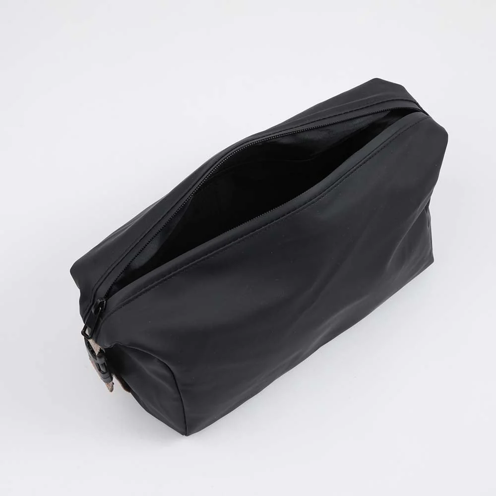 Neceser Gorillaz Geronimo de color negro. Este cosemtiquero de nylon negro cuenta con un bolsillo interior y con correas ajustables a ambos lados.