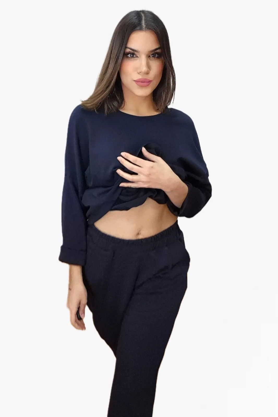 Pantalón jogger largo con bolsillos y pinzas. Cintura elástica.