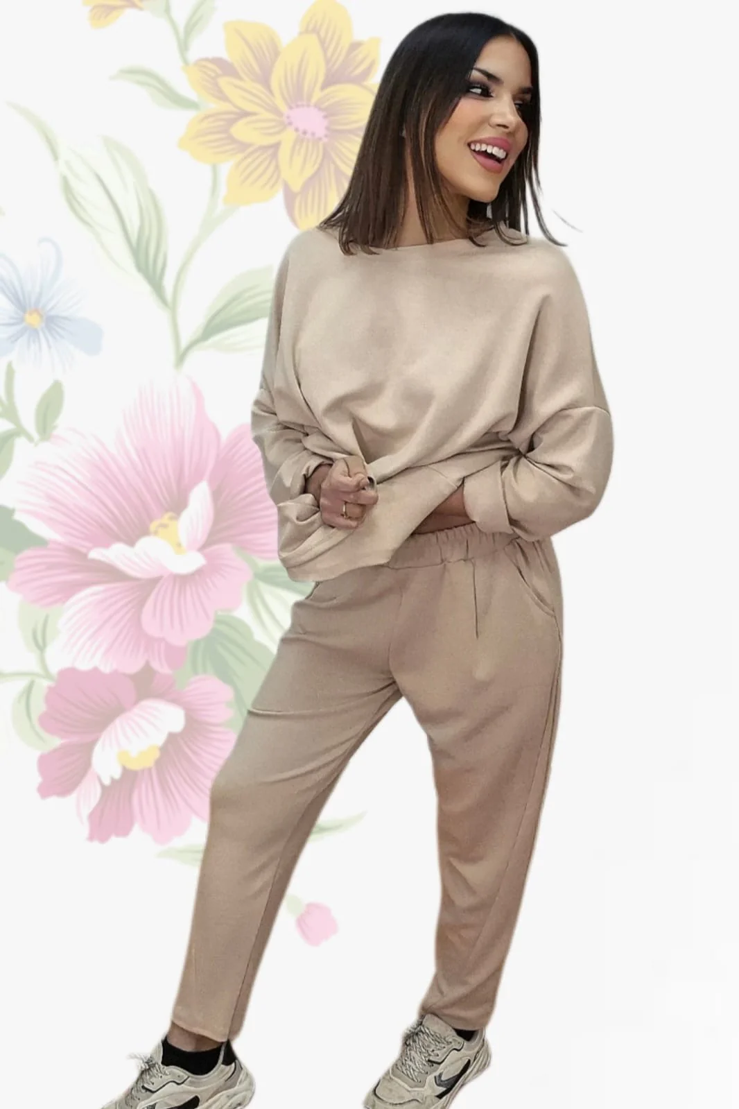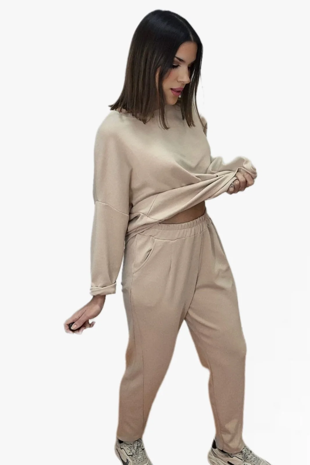 Pantalón jogger largo con bolsillos y pinzas. Cintura elástica.