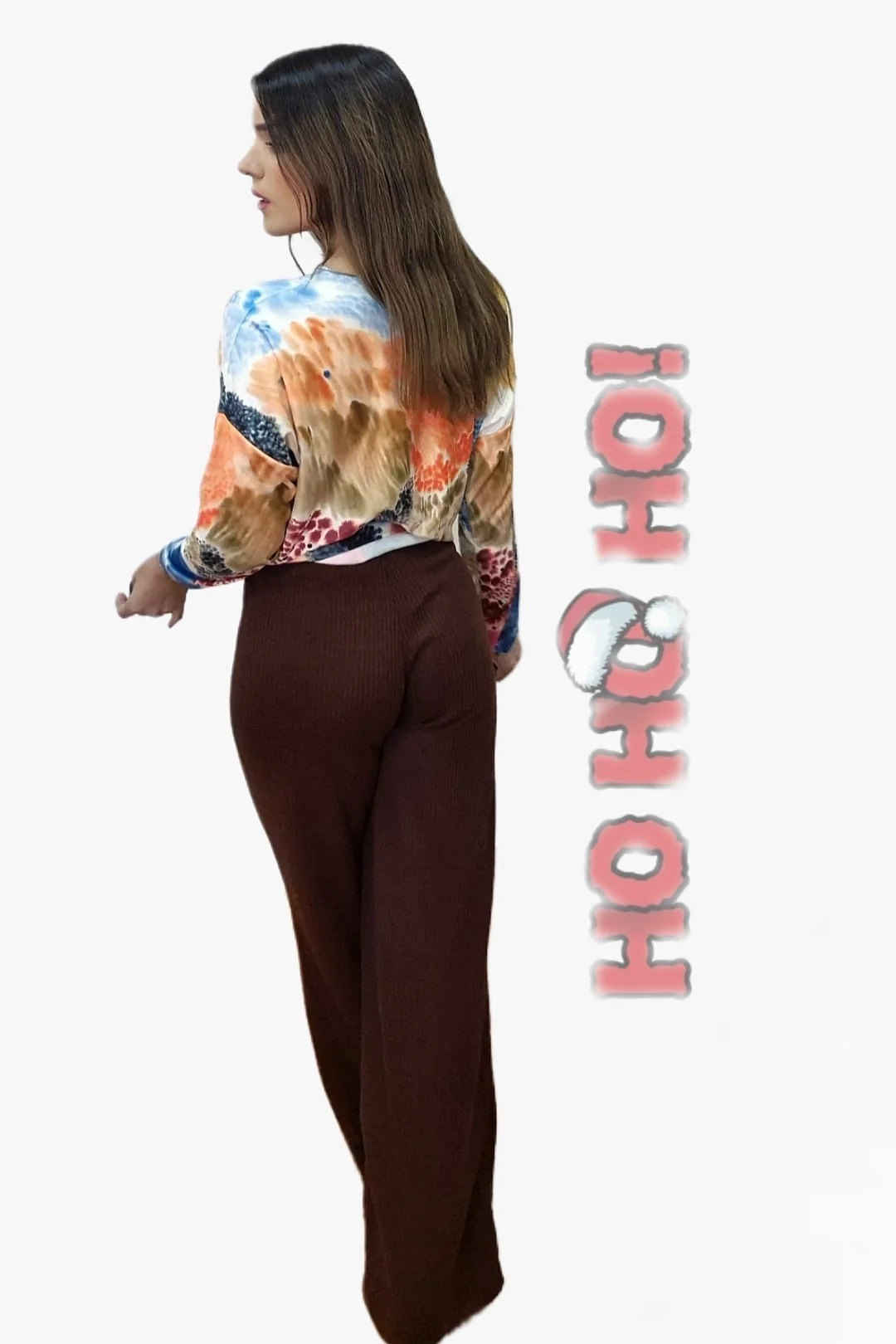 Pantalón largo de canalé con cintura elástica y pierna ancha.