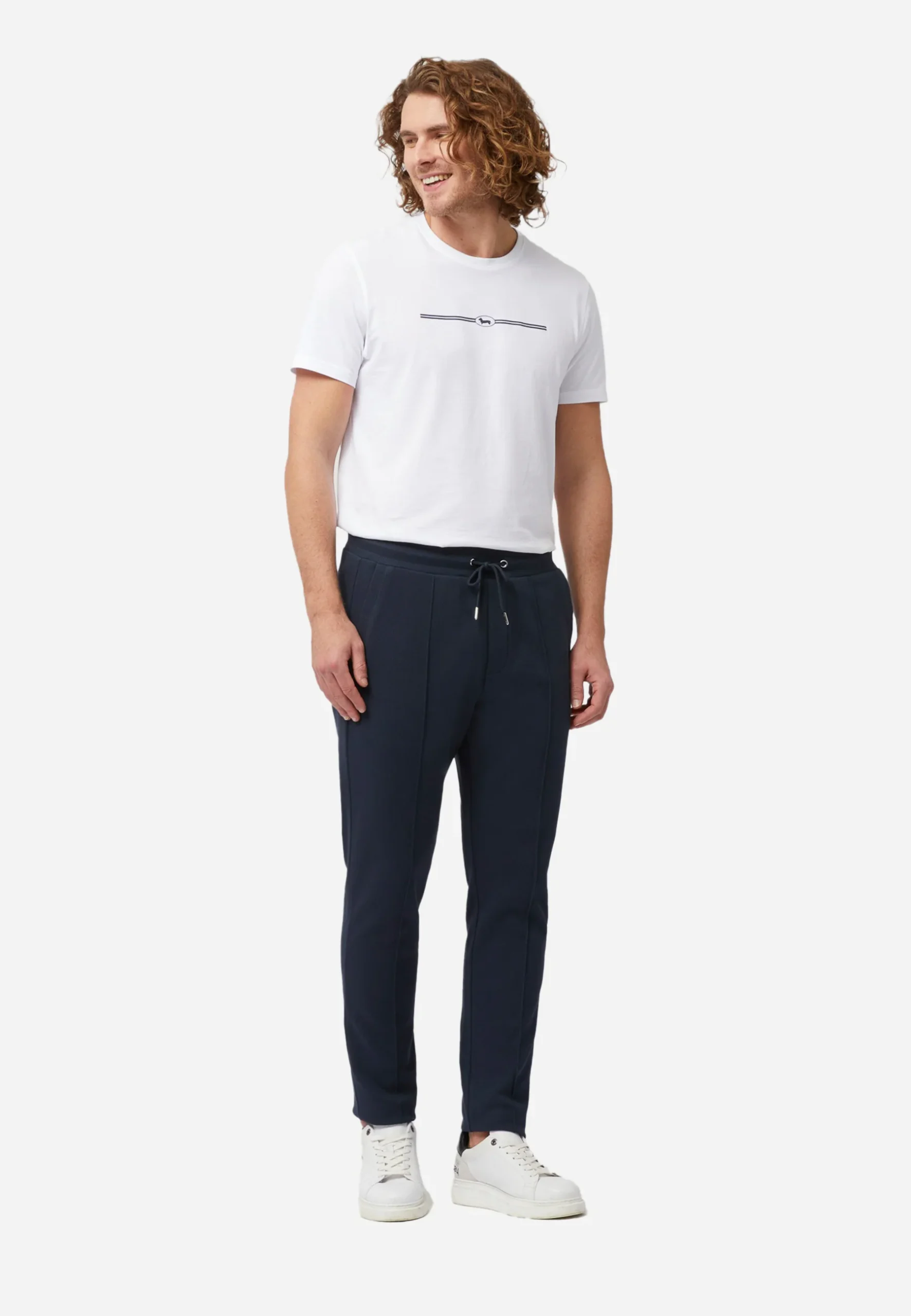 Pantalón Coulisse , confeccionado en mezcla de algodón y poliéster de alta calidad con un ligero porcentaje de elastano, lo que proporciona suavidad, elasticidad y comodidad durante el uso. Su color azul marino profundo le da un estilo elegante y versátil. Incluye ajuste en la cintura con cordón, corte slim fit y pliegues frontales marcados, combinando la comodidad deportiva con un acabado empresarial moderno. Perfecto para entornos business casual, uniformes corporativos o un look urbano refinado.