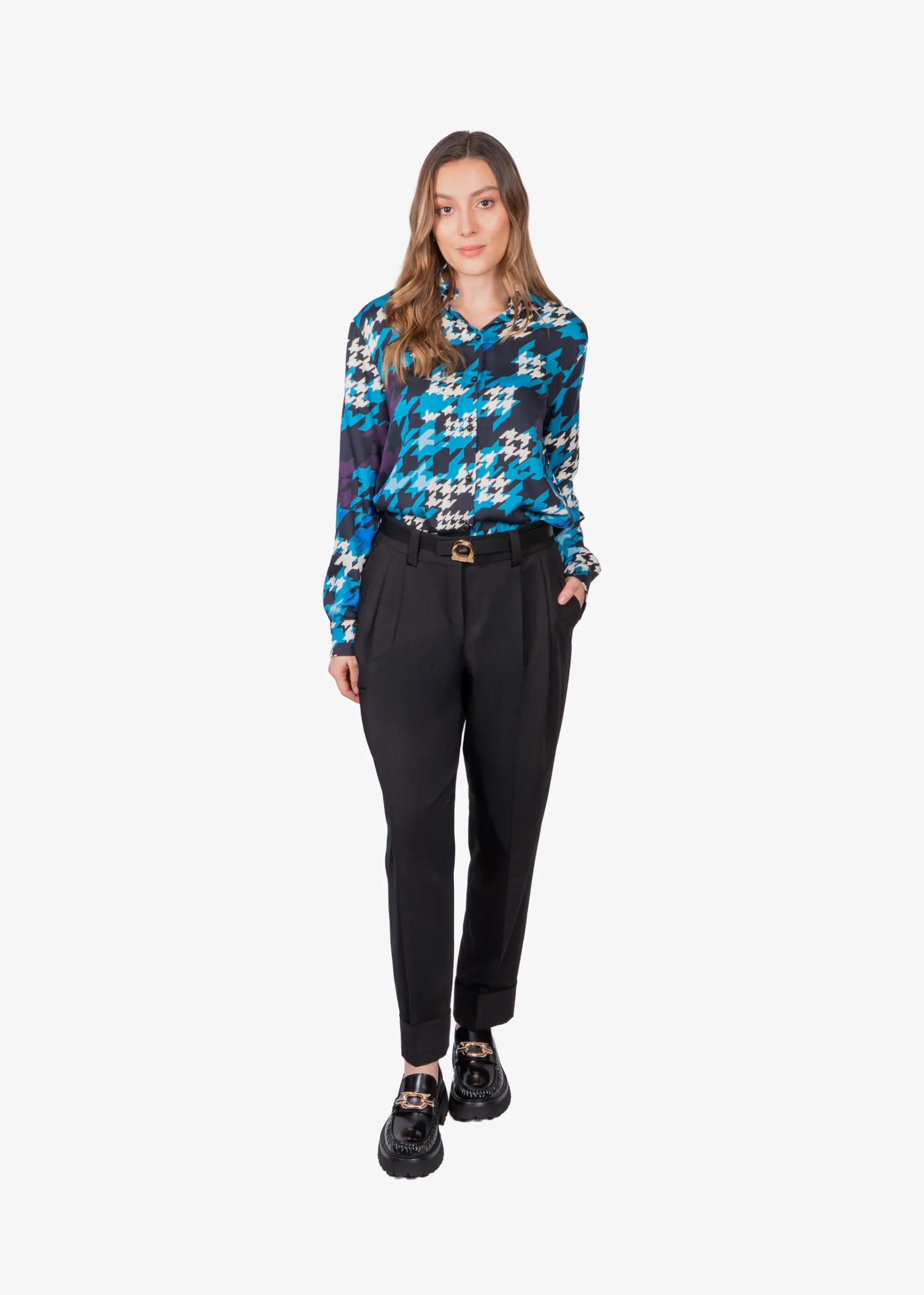 El pantalón negro de Harmont & Blaine, elaborado en una mezcla de poliéster y viscosa, combina sofisticación y comodidad. Su corte favorecedor y caída elegante realzan la silueta, mientras que su diseño versátil y color atemporal lo hacen ideal para ocasiones formales o estilos casual-chic. Perfecto para quienes valoran la calidad y el lujo italiano en cada prenda.(W0MDA6053418-999)