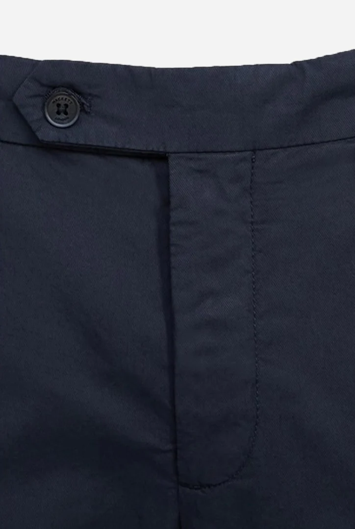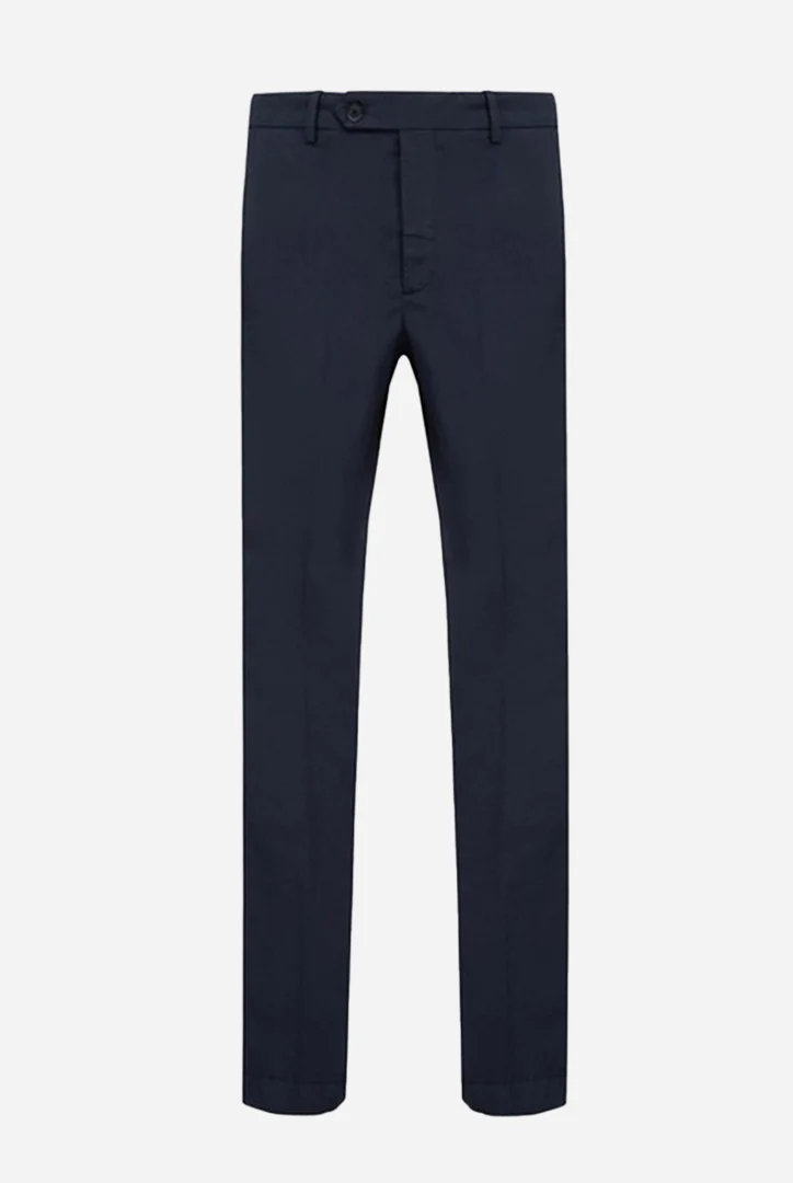 pantalón azul marino es un básico imprescindible en el armario masculino. Confeccionado en algodón de alta calidad con un toque de elastano, combina comodidad y estilo en un corte moderno y sofisticado. Su tono azul marino lo hace fácil de combinar, ideal para la oficina, ocasiones especiales o un look smart-casual, Bolsillos laterales y traseros, cierre con cremallera y botón, acabado limpio.