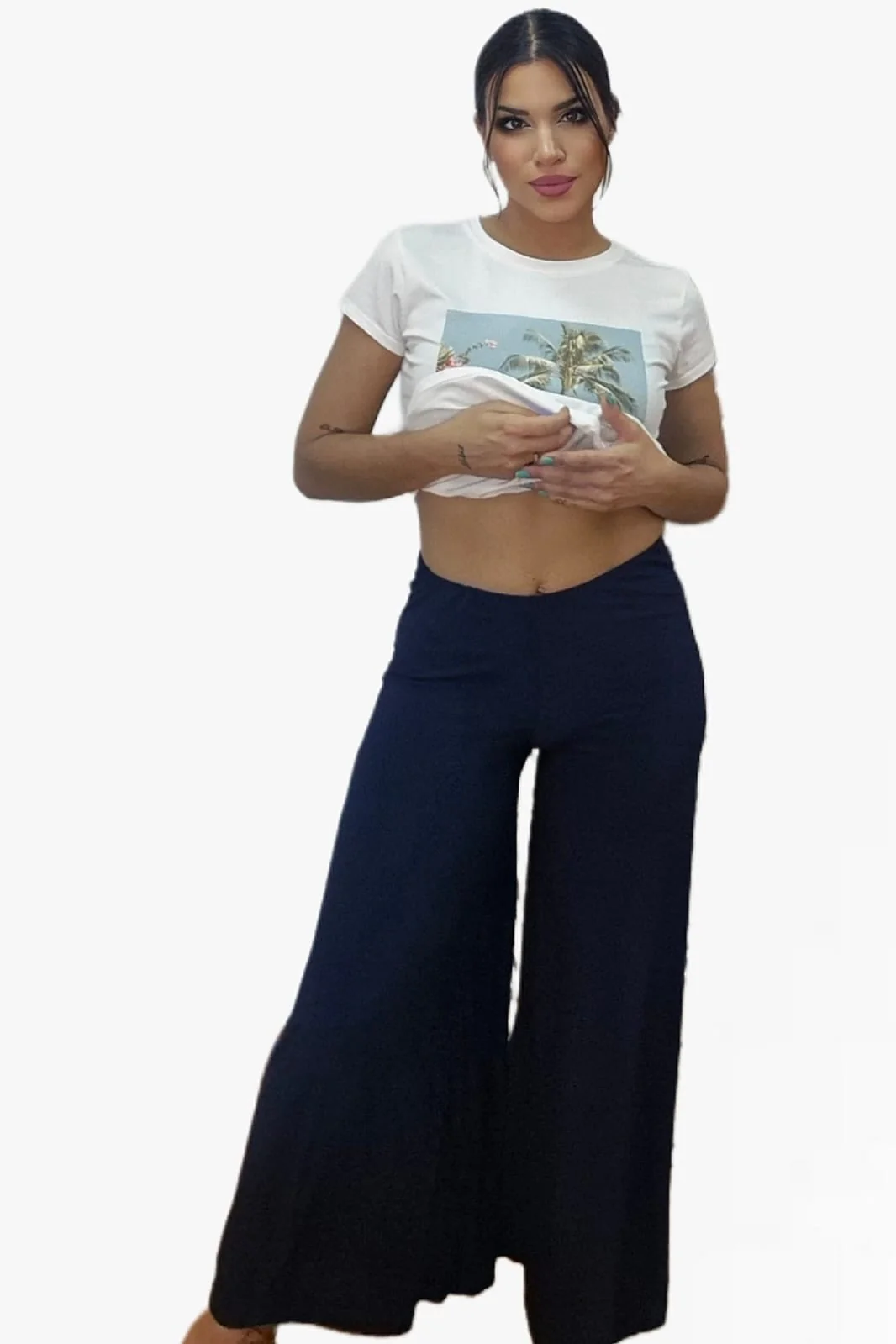 Cómodo, elástico y con caÃda impecable: el pantalón de punto fluido se convertirá en tu básico favorito de temporada. Su diseño de pierna ancha y tiro alto estiliza la figura y se adapta sin apretar gracias a su tejido con caÃda suave. Talla única con muchÃsima elasticidad, disponible en cinco colores irresistibles.