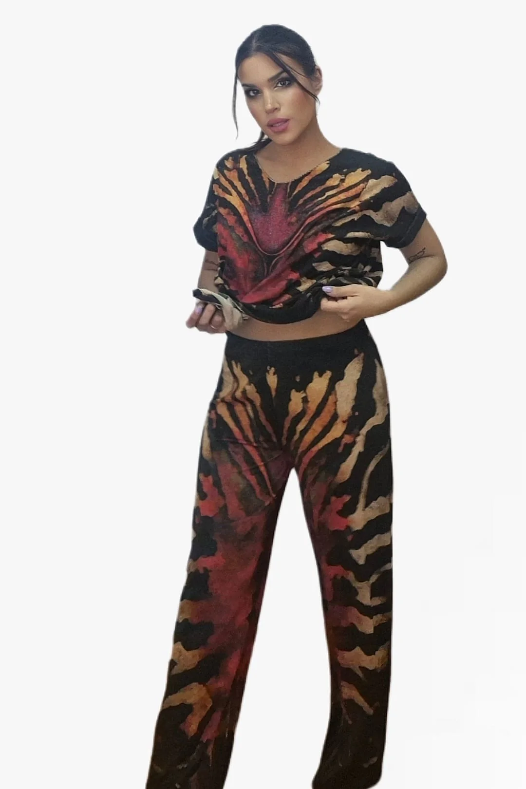 Pantalón zebra colorida – Estilo salvaje con brillo y confort