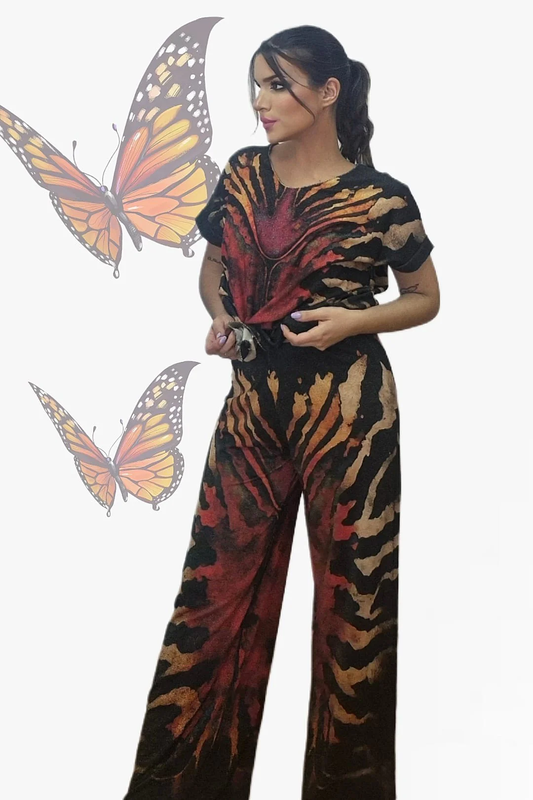 Completa el look con la camiseta zebra colorida a juego y crea un conjunto coordinado que no pasará desapercibido. Añade sandalias o sneakers según el plan y deja que el estampado hable por ti.