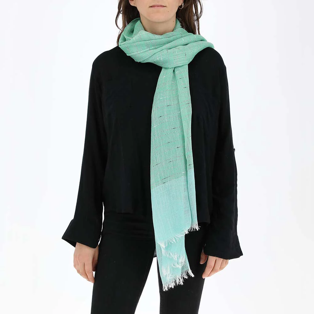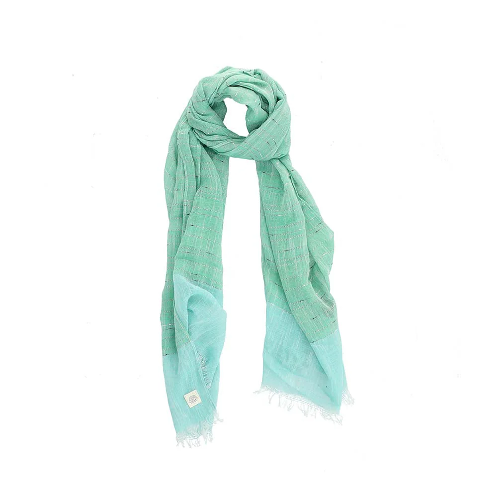 Pañuelo Humana Green Peace liso verde, que pertenece a la colección Island Green. Terminado en desflecado blanco de la misma tela.