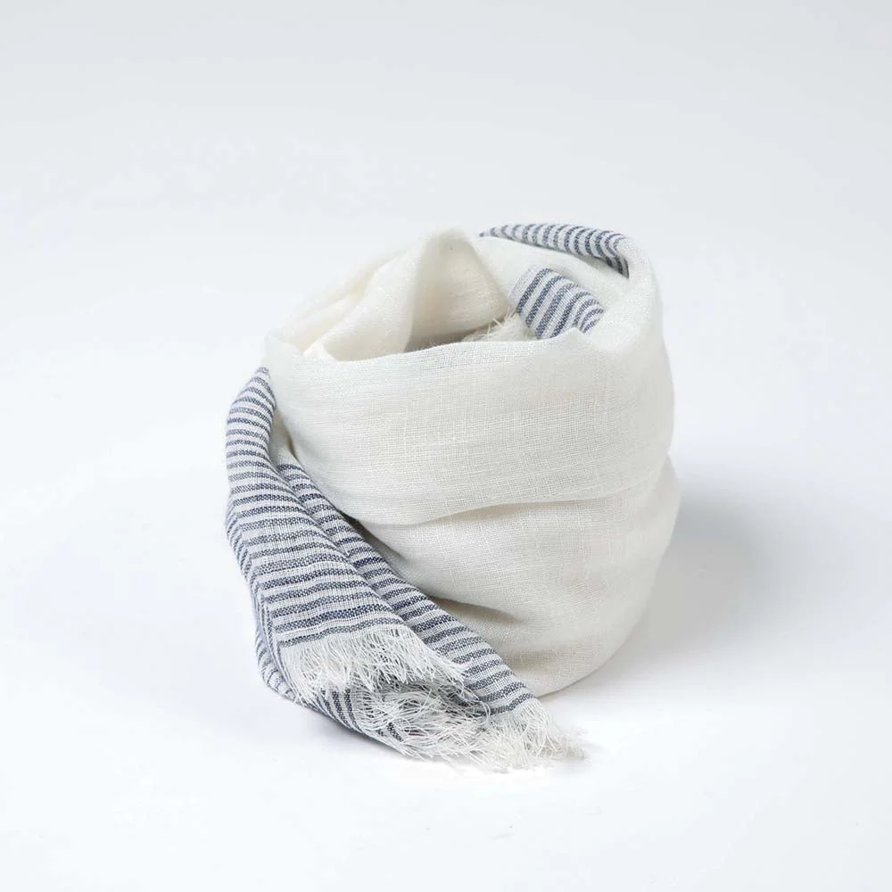 Pañuelo Liso Humana Maroma de color azul perteneciente al la colección Cornflower Blue. Es un pañuelo blanco con rayas azules.