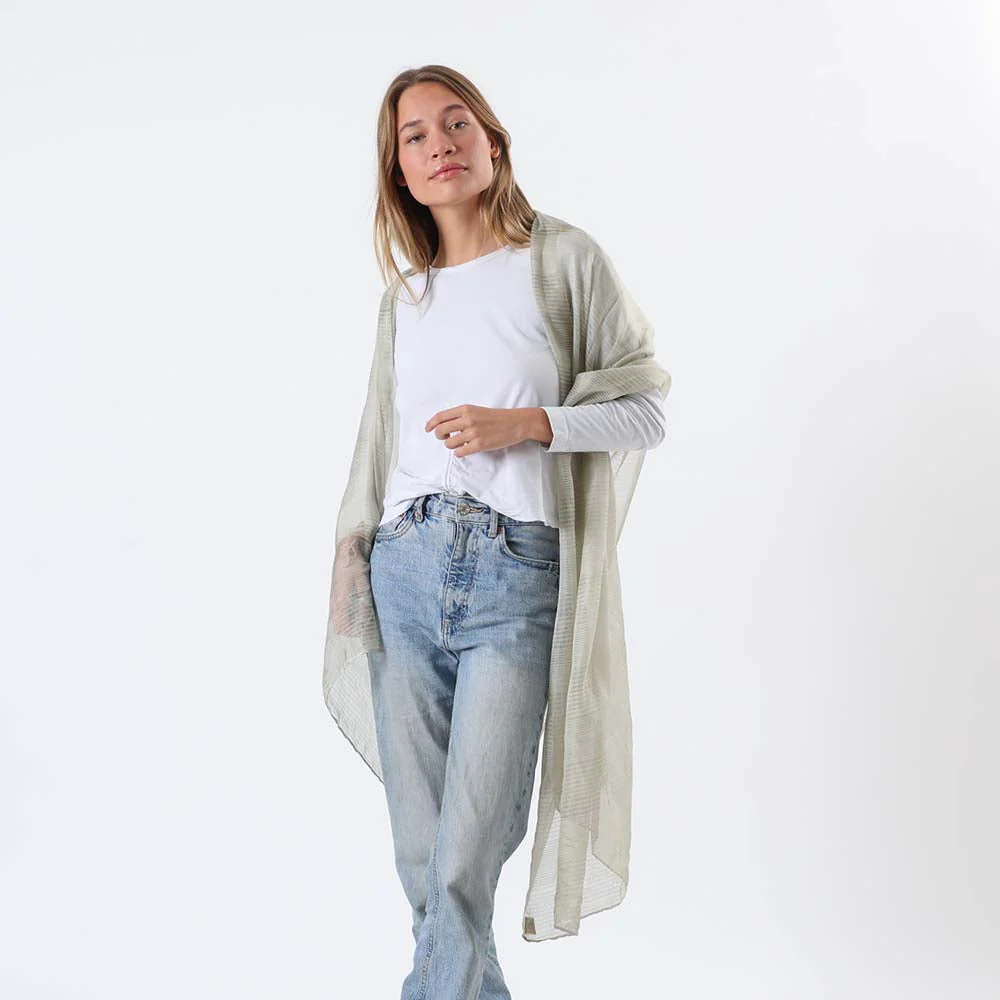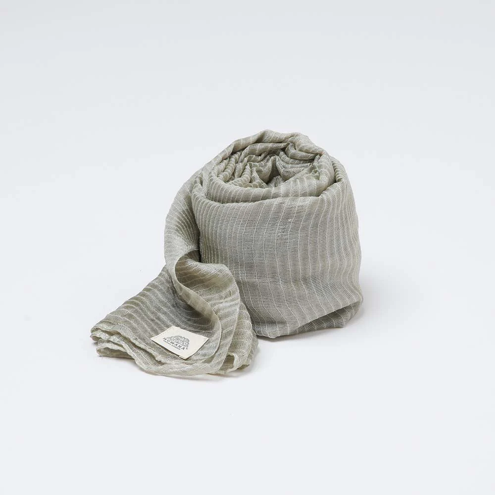 Este es un pañuelo liso de color verde con diseños lineales a tono y cosido por todos sus extremos.