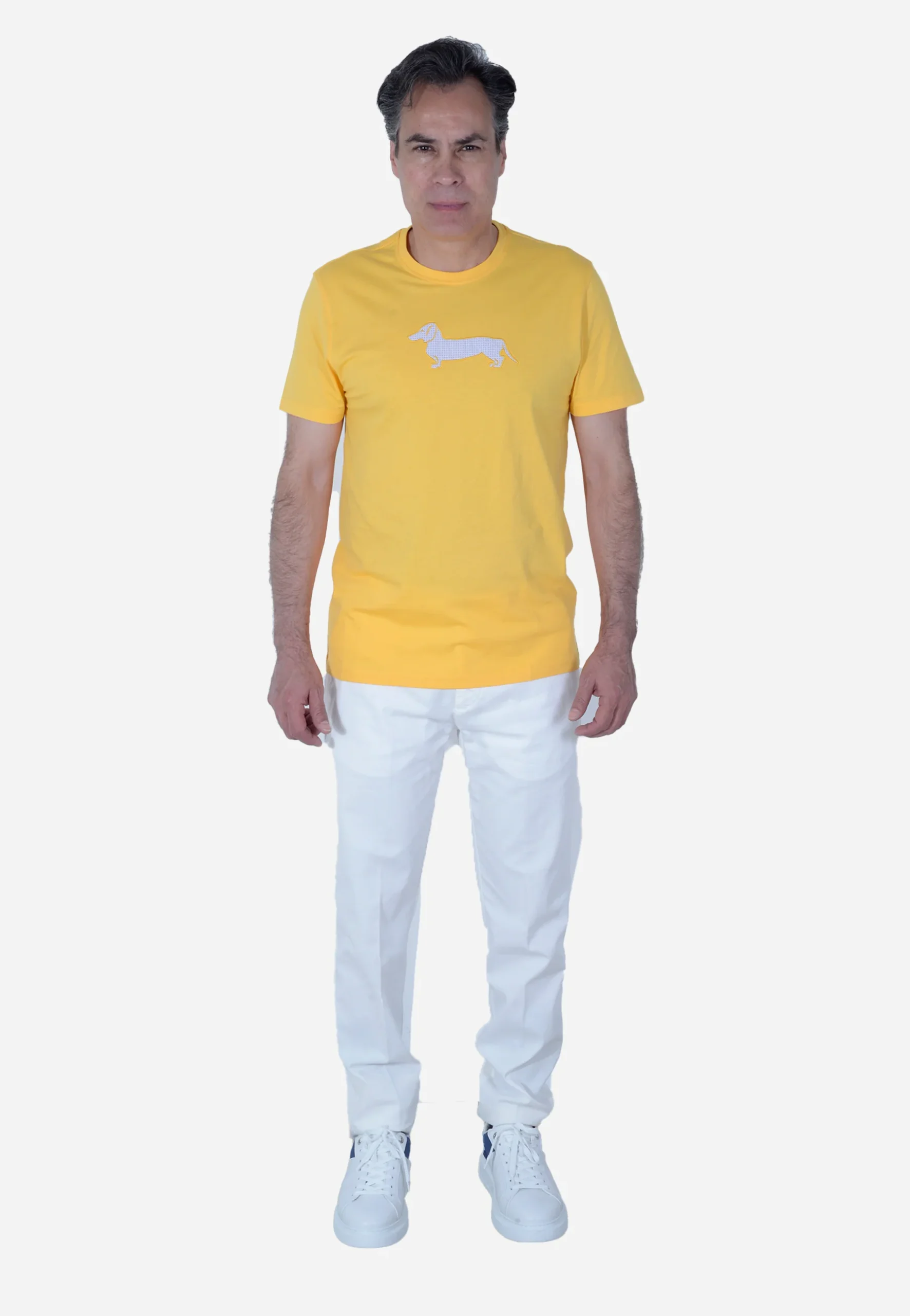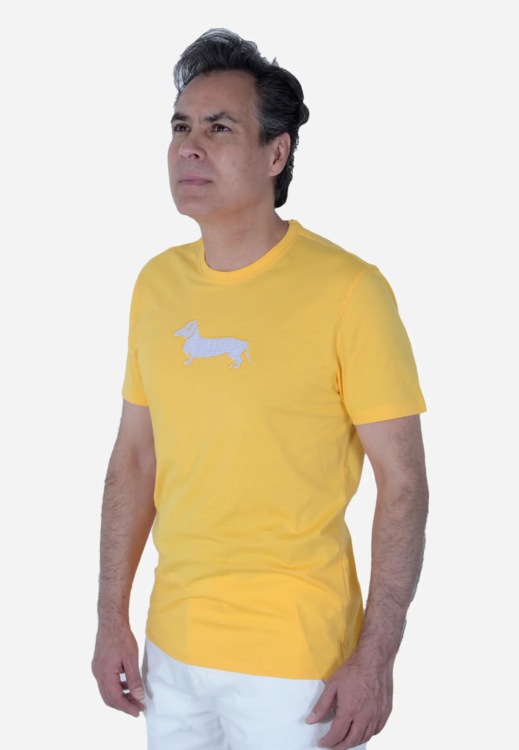 Esta playera para hombre en color amarillo vibrante es perfecta para un estilo relajado y con personalidad. Tiene un corte regular que brinda comodidad sin perder estilo, un cuello redondo clásico que se adapta bien al cuerpo, y mangas cortas ideales para climas cálidos. Está confeccionada en un material suave y ligero, con un divertido estampado frontal de un perro tipo T-SHIRT que añade un toque único y juvenil.