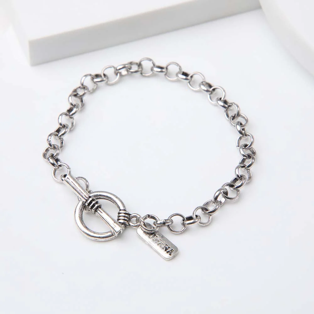 Pulsera Humana Alginet de color plateado perteneciente a la colección Radiant Red. Pulsera de cadena con cierre timón.