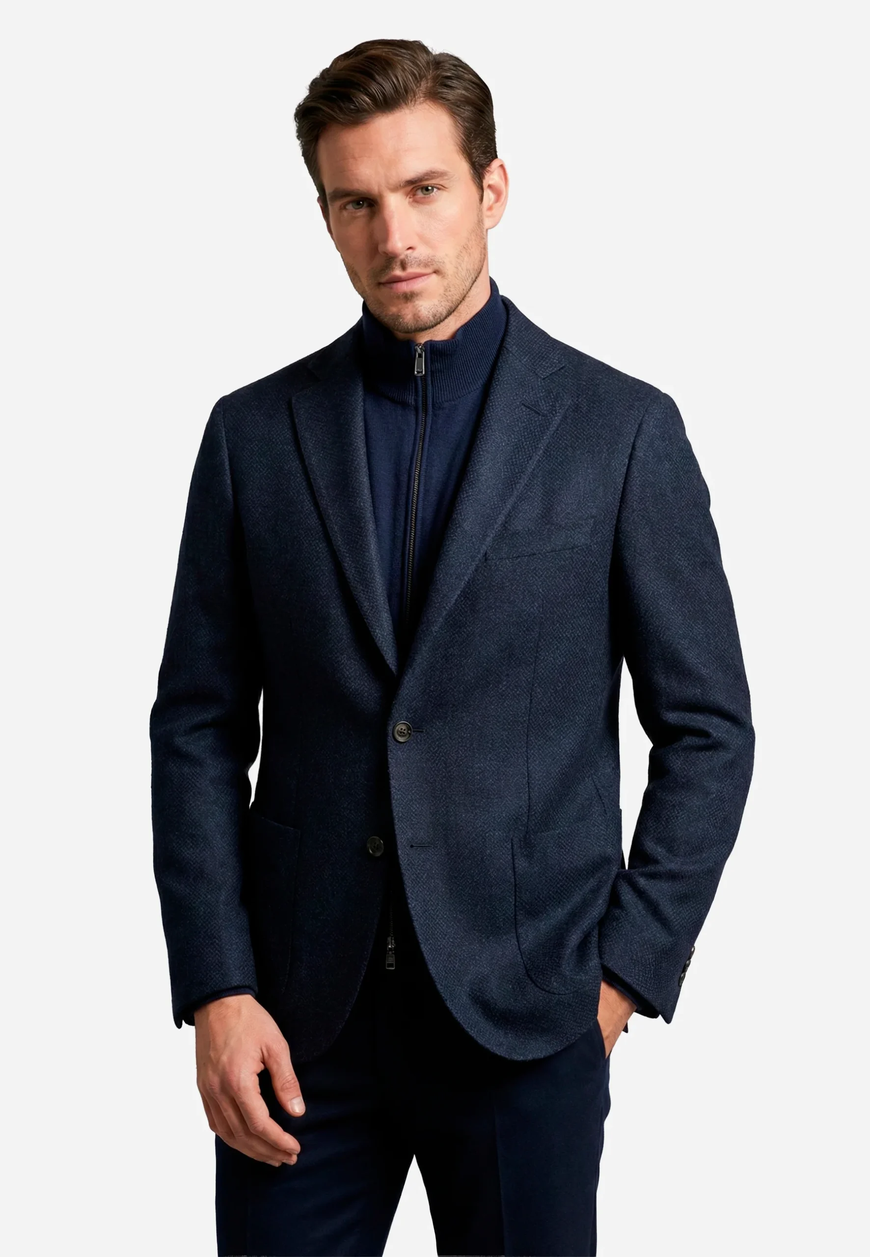 Saco (Blazer) Corneliani confeccionado en lana. Ajuste con solapa y zipper desmontable, botonadura en parte frontal y bolsillos funcionales.