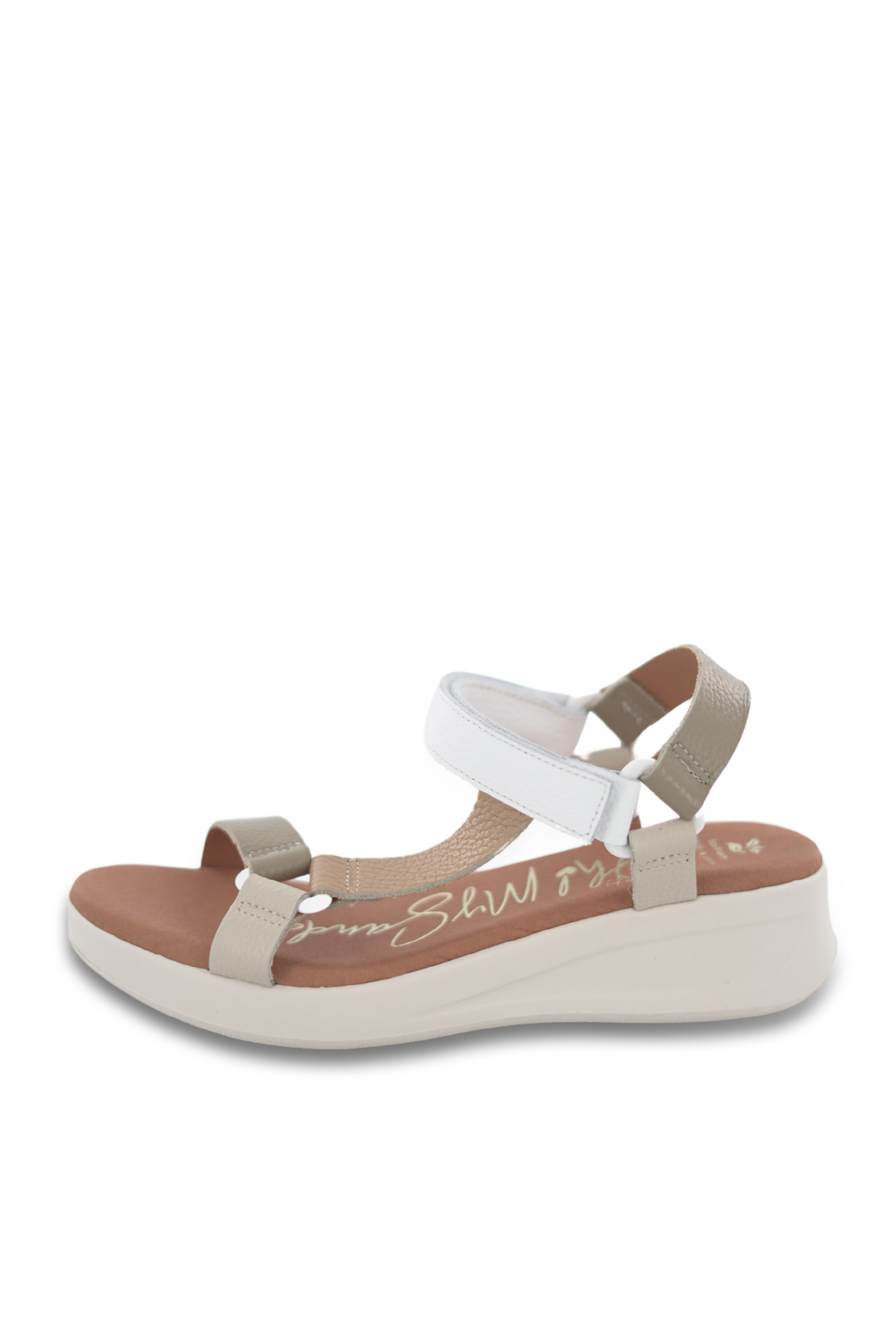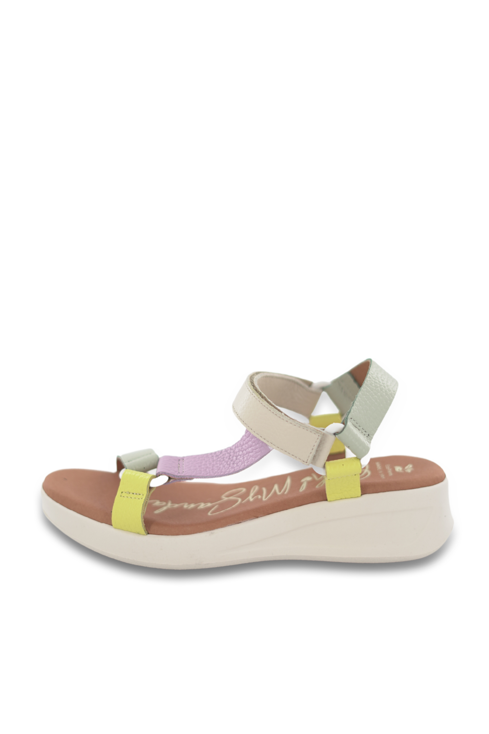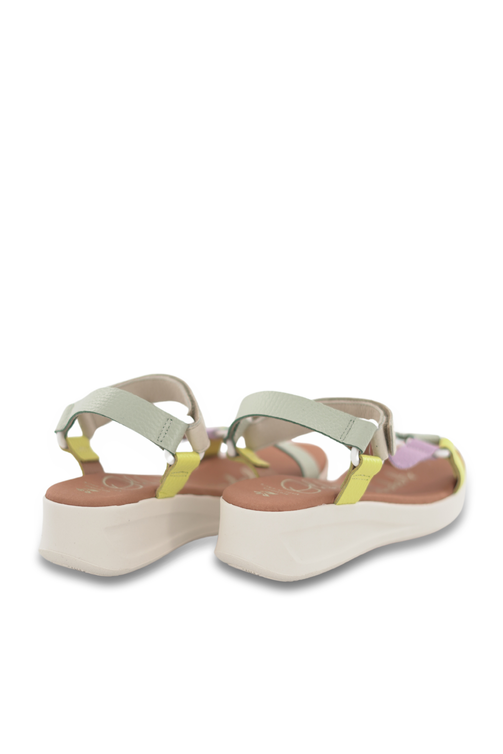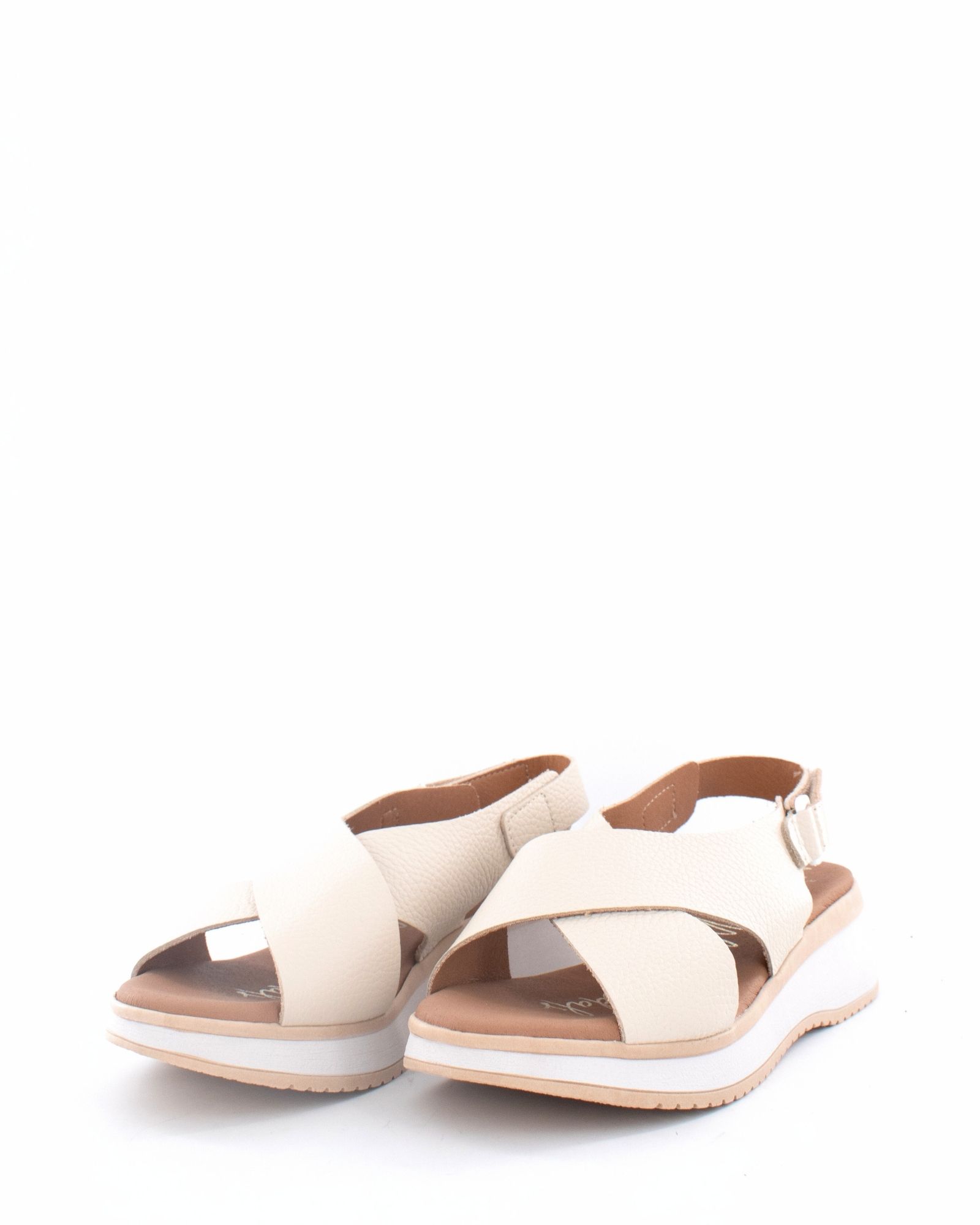 Sandalia confort con plataforma con tiras multicolor en tonos beige de piel,piso acolchado y suela antideslizante en goma.