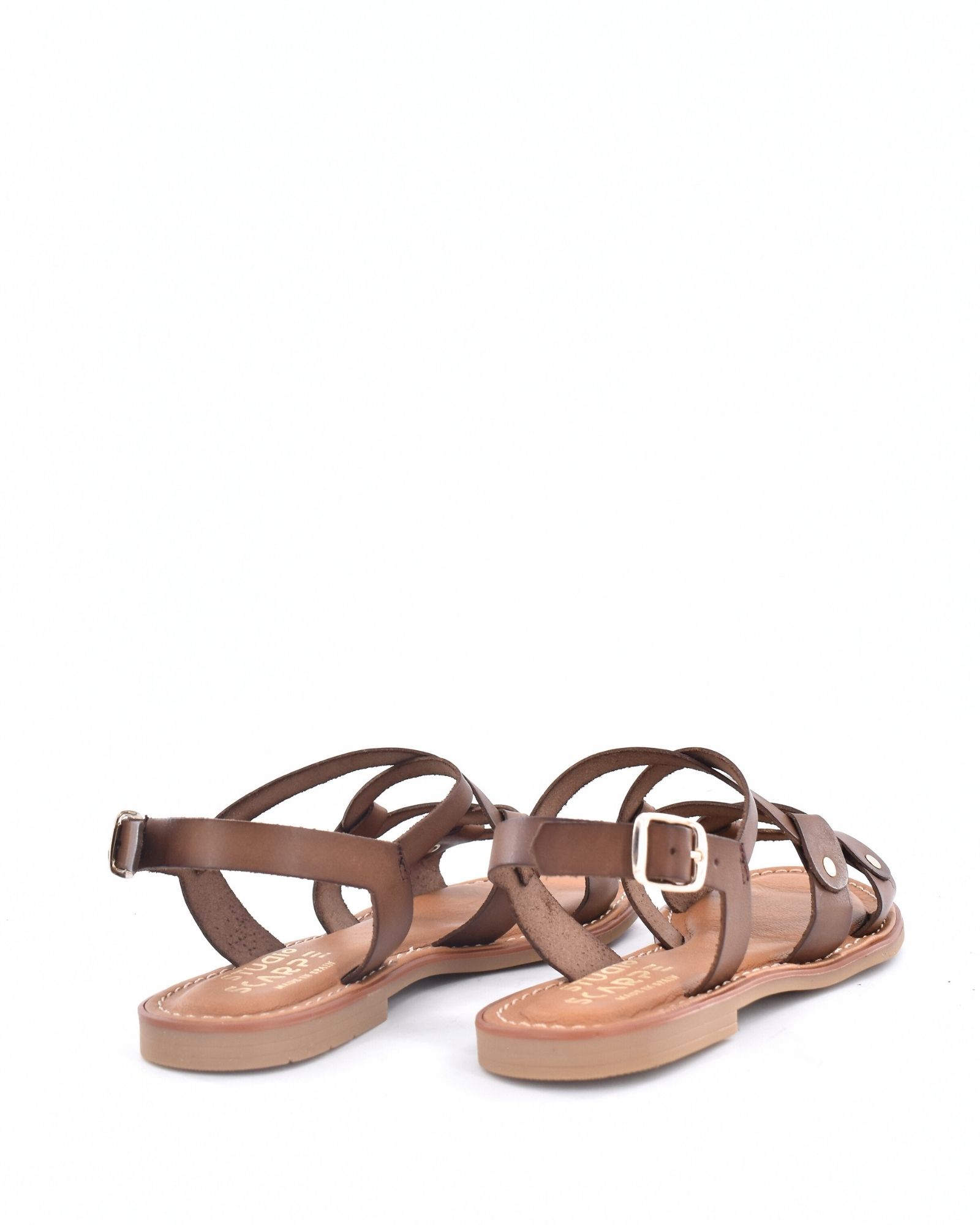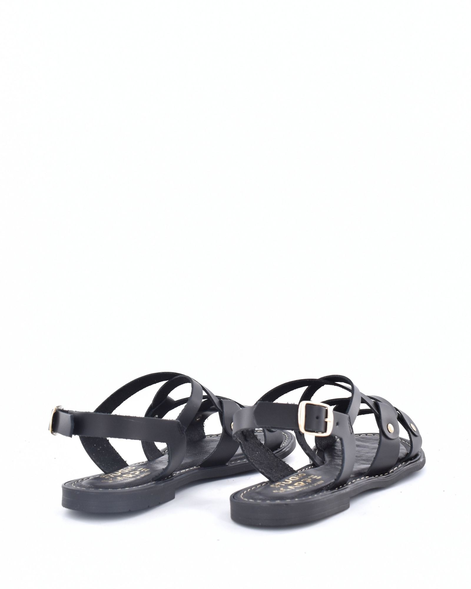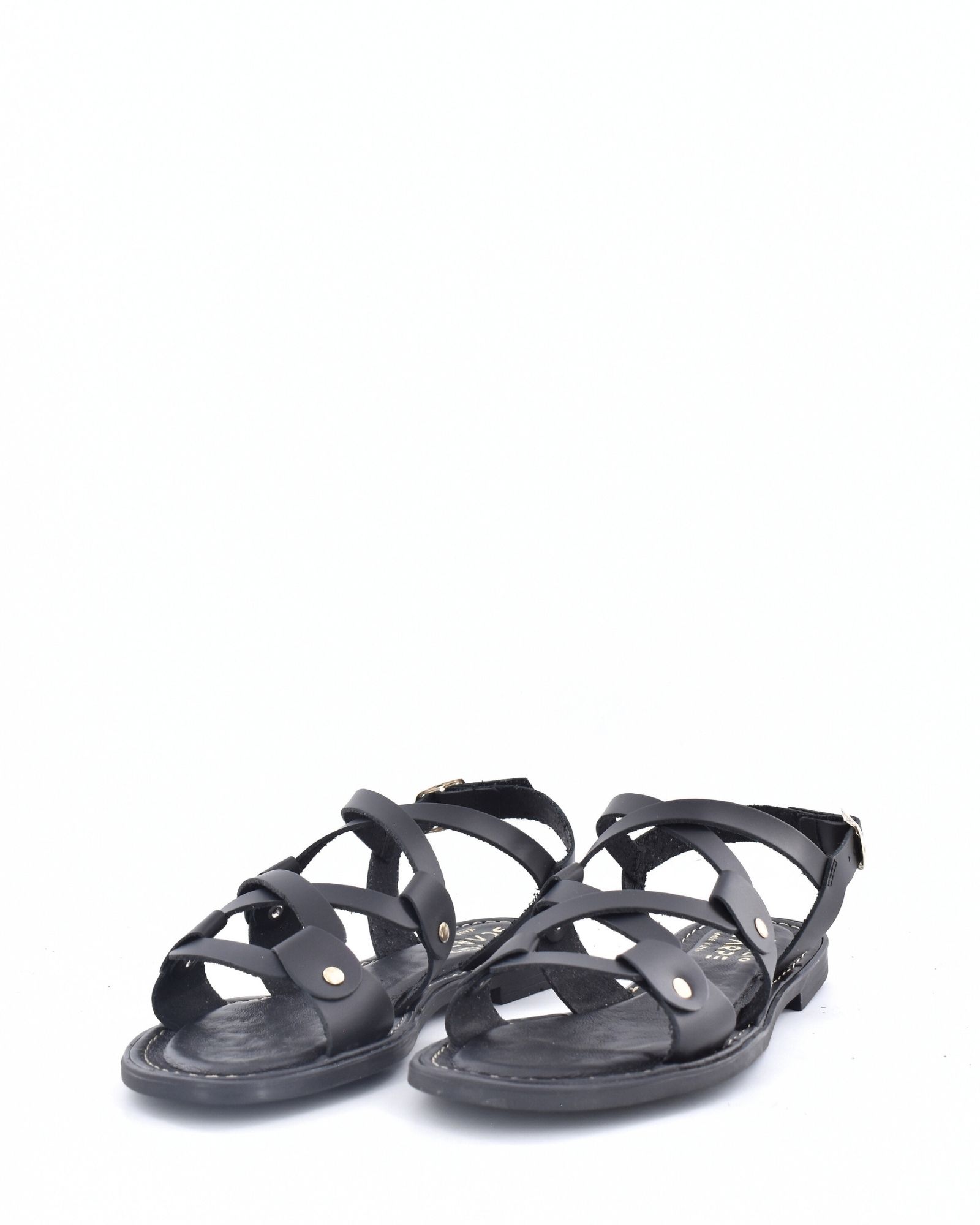 Sandalia confort con plataforma con tiras en tonos negro y cuero, de piel, piso acolchado y suela antideslizante en goma.
