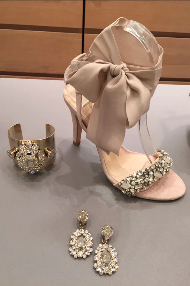 Sandalias realizadas en ante con pedrería y lazada en seda color topo.