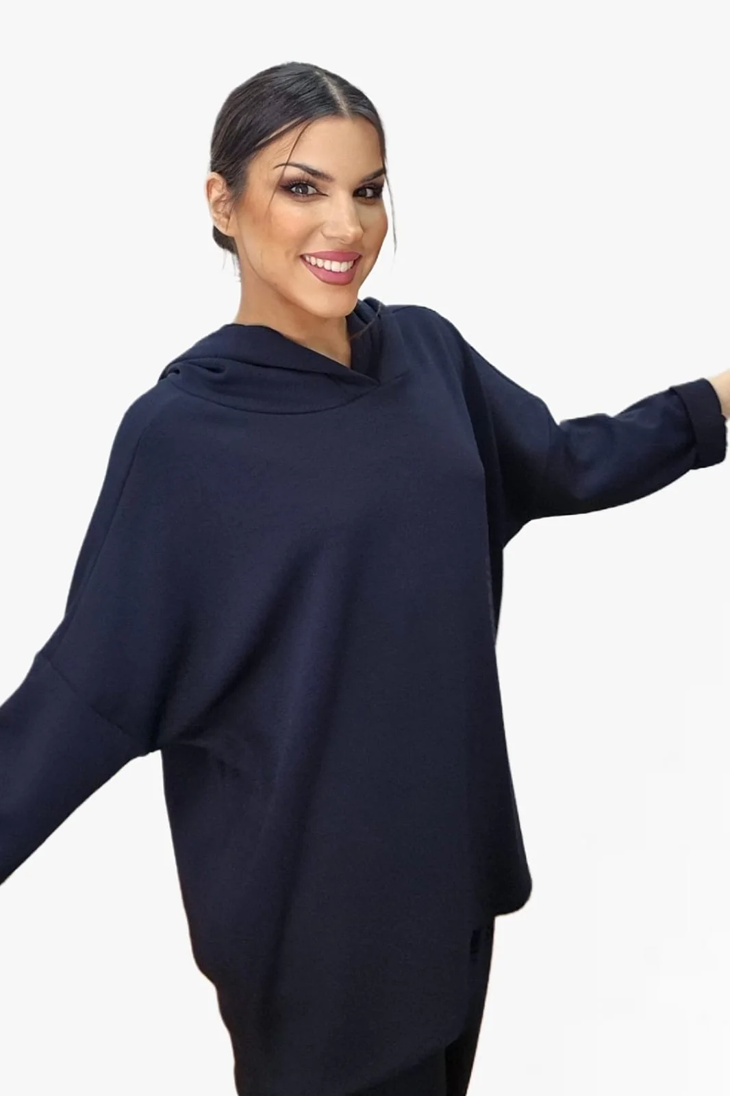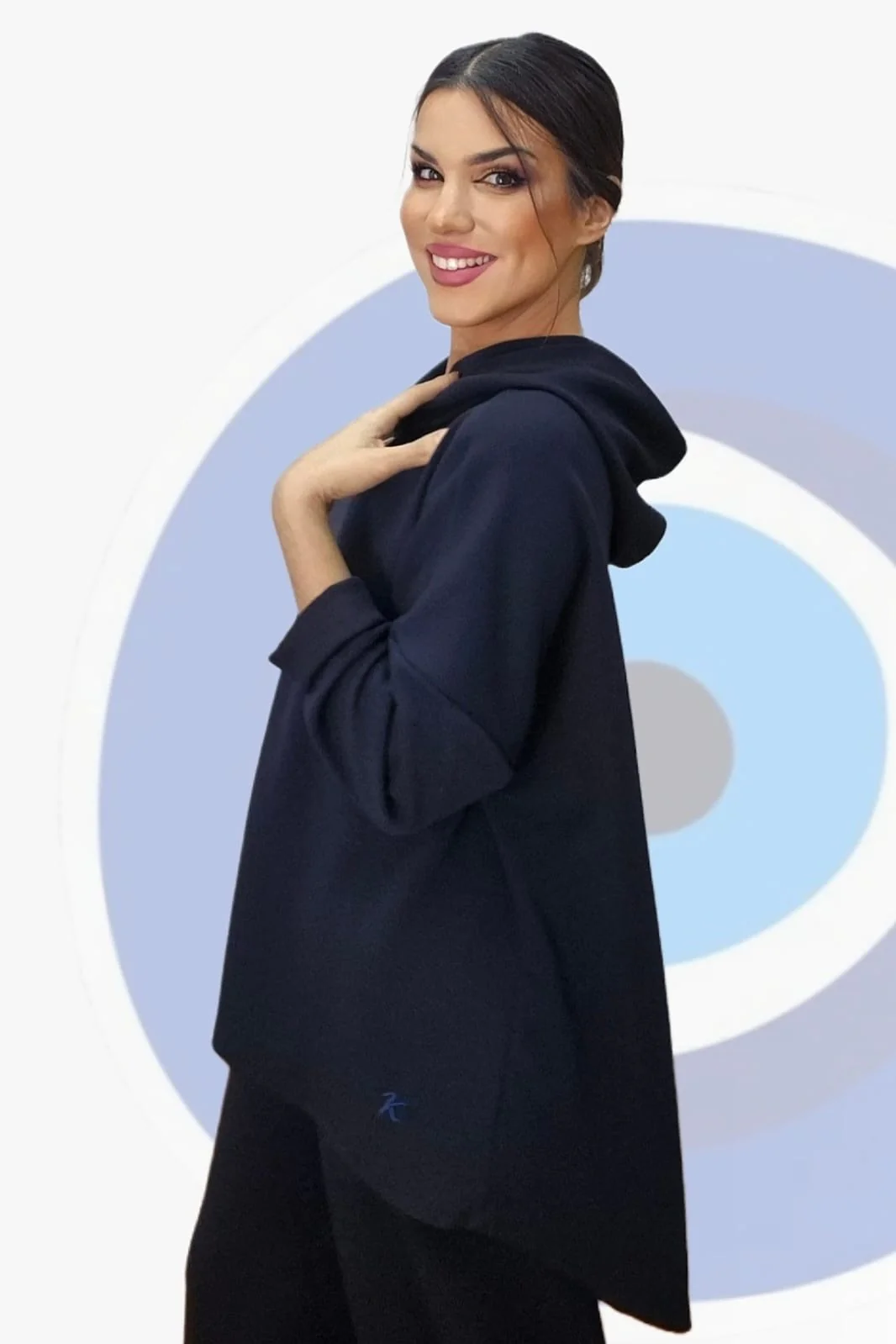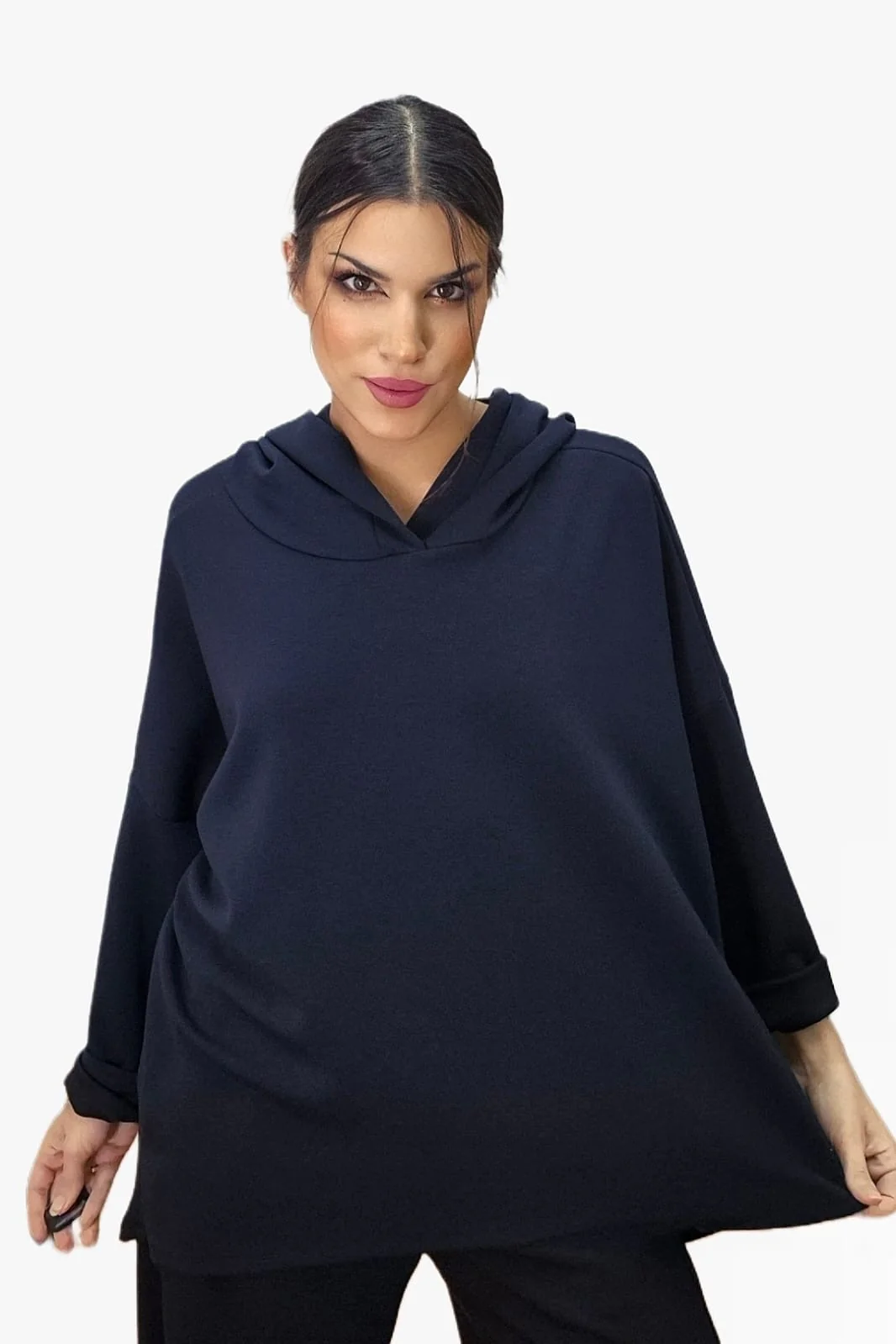 Sudadera básica con capucha y corte asimétrico.