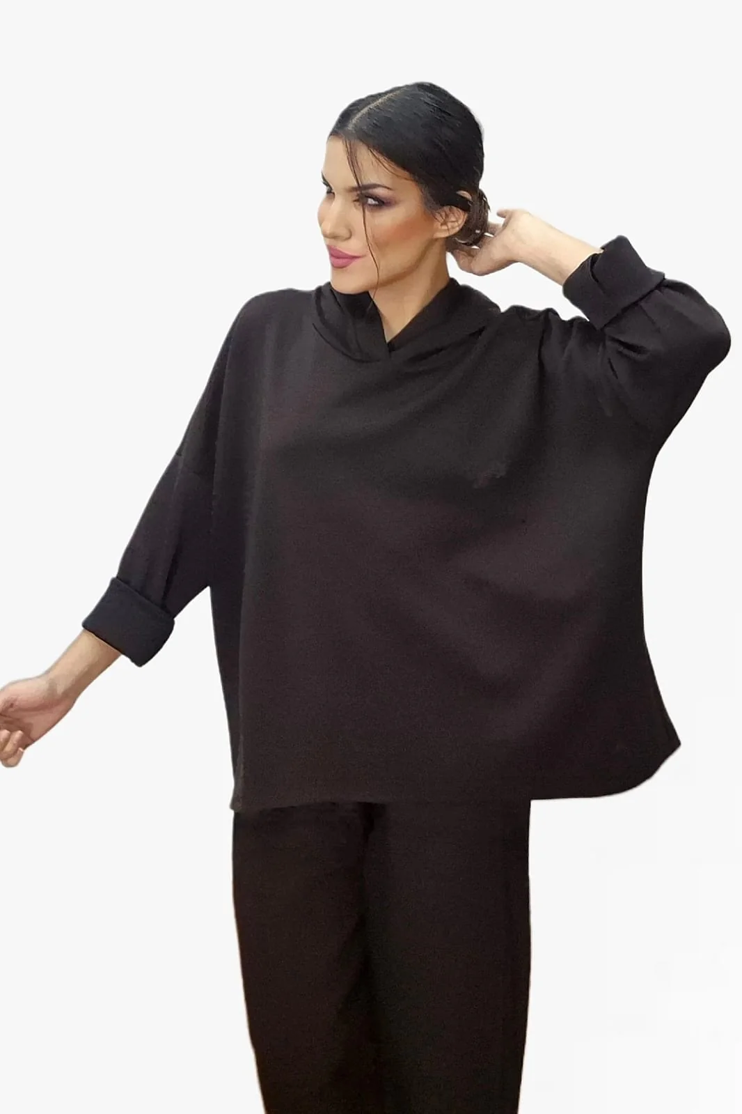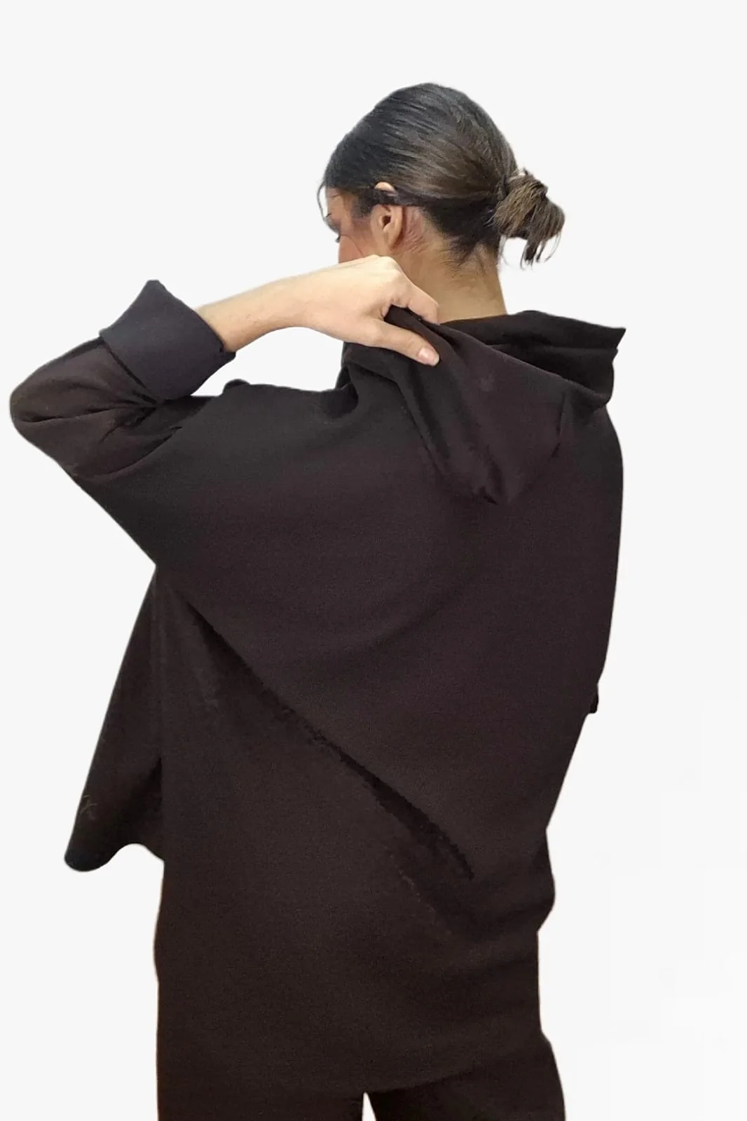 Sudadera básica con capucha y corte asimétrico.