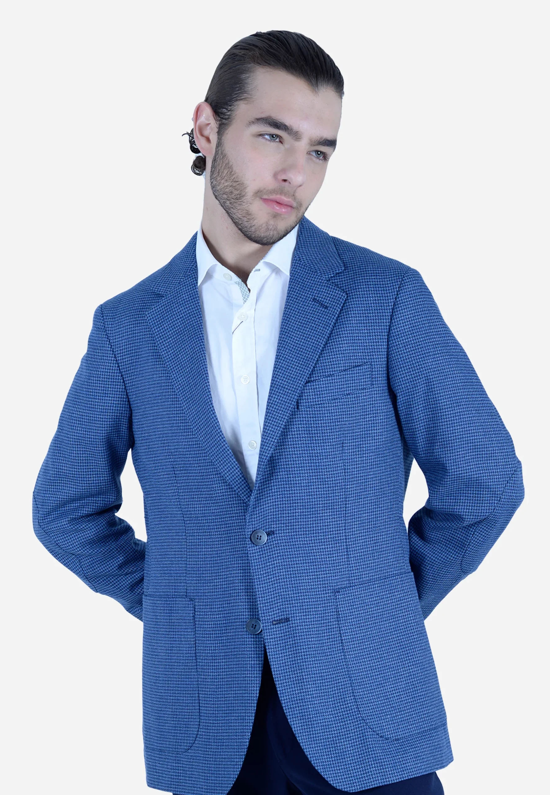 Suéter Hackett London azul a cuadros para hombre, diseñado para quienes buscan un toque de distinción sin sacrificar comodidad. Su patrón de cuadros estilo Príncipe de Gales y corte ajustado (slim fit) lo convierten en una prenda clave para cualquier guardarropa contemporáneo. Solapas clásicas, cierre de dos botones y bolsillos con solapa.
