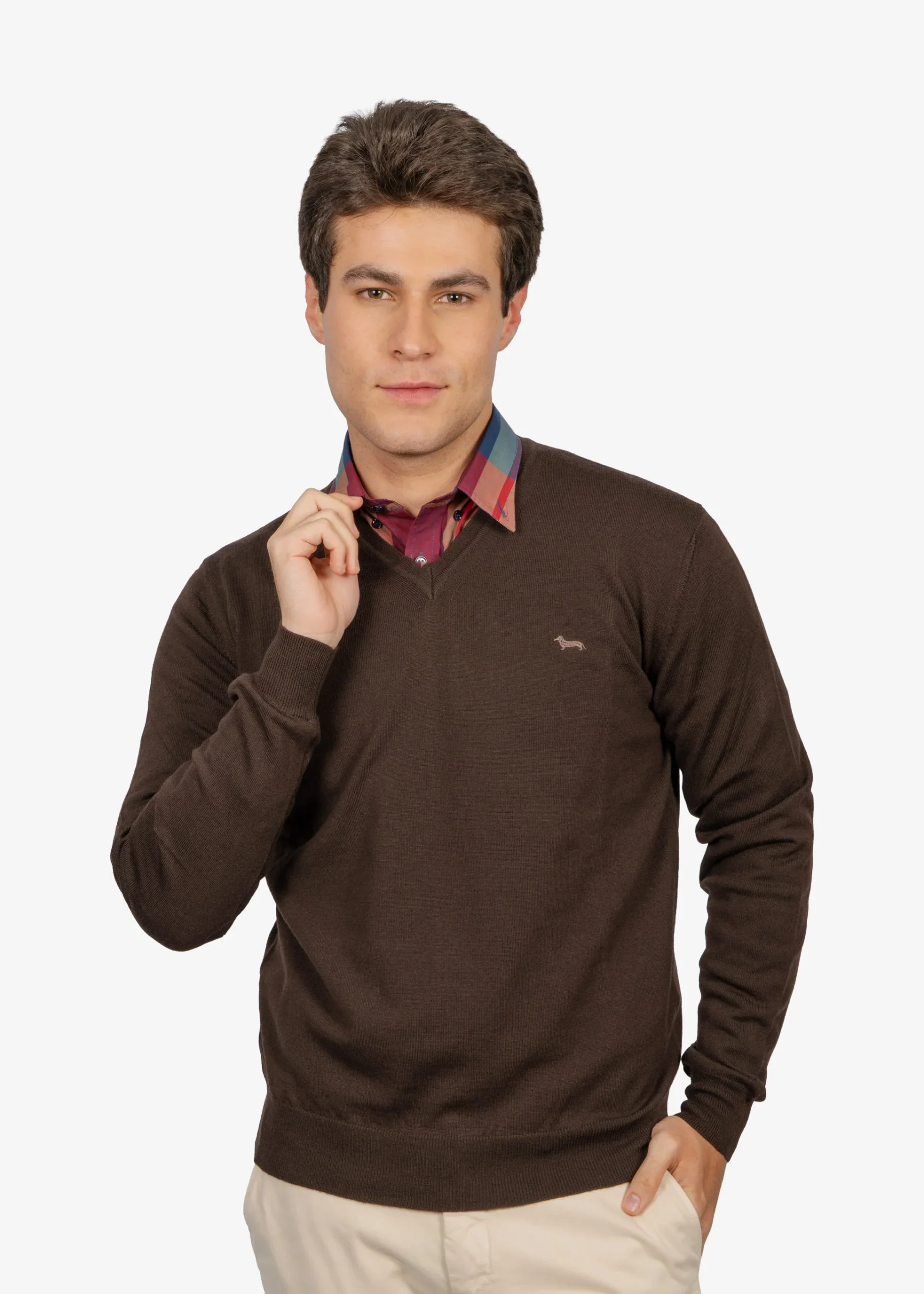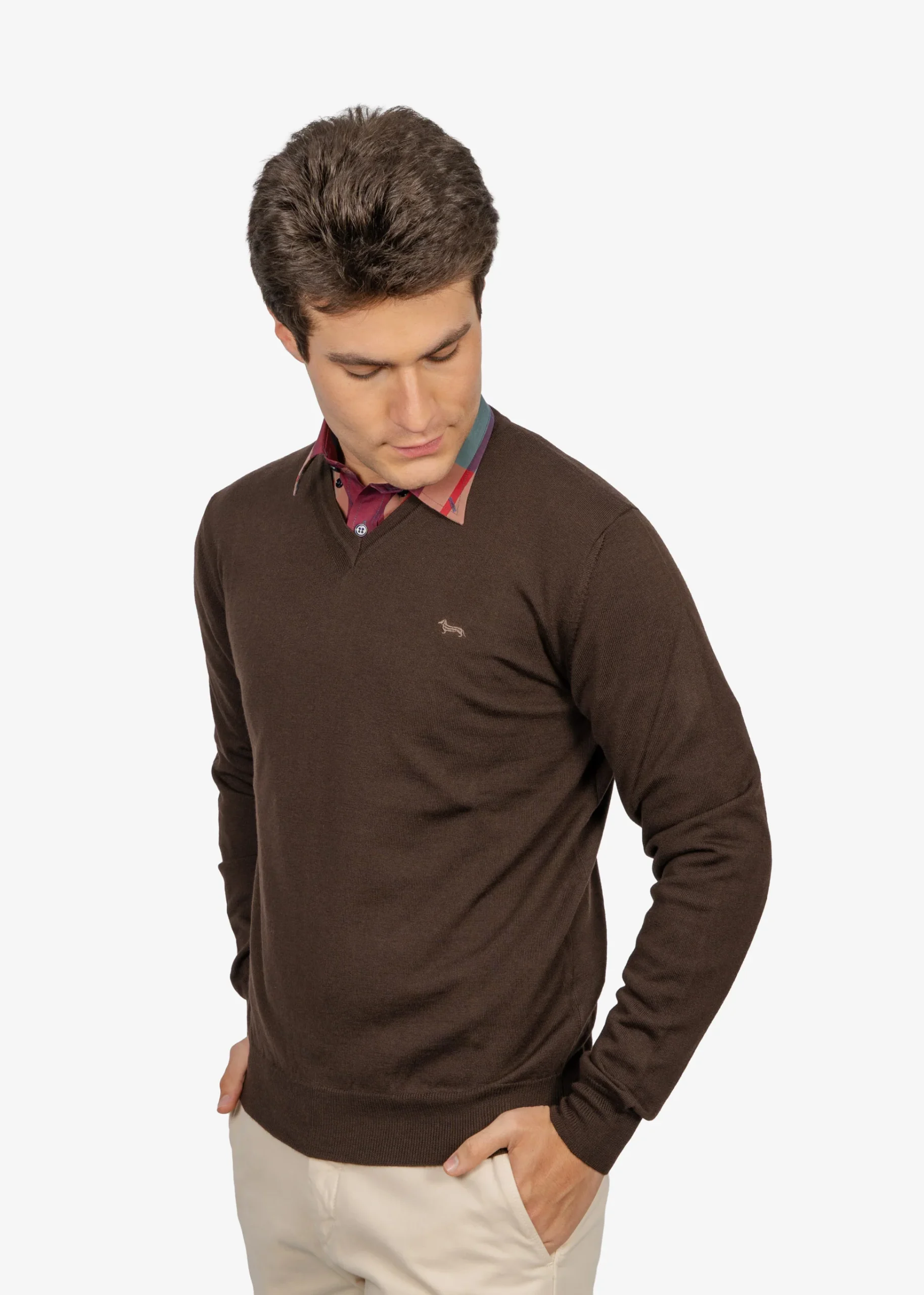 Este suéter café Harmont & Blaine está confeccionado en lana merino italiana de alta calidad, que aporta suavidad y calidez excepcionales. Su diseño de corte regular y cuello redondo, junto con detalles ribeteados, ofrece un estilo minimalista y sofisticado, ideal para looks urbanos con funcionalidad. Disponible en talla M, es una pieza clave para campañas de otoño-invierno que buscan elegancia cotidiana.