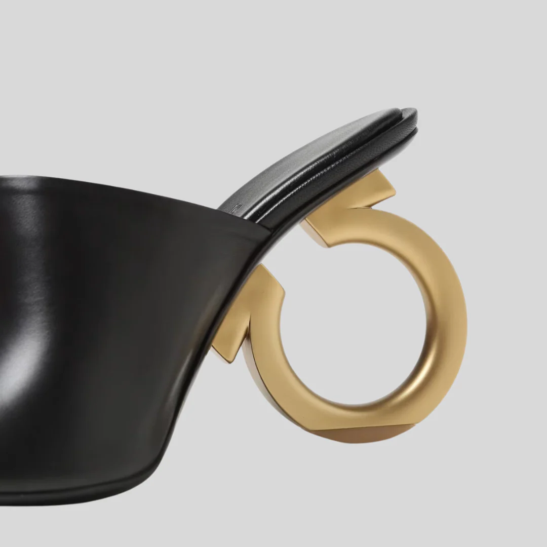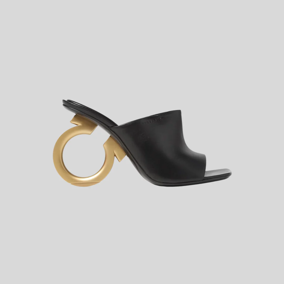 Un diseño que redefine la elegancia minimalista. Confeccionados en suave napa, estos mules destacan por su silueta escultórica inspirada en el icónico Gancini y su sofisticada punta abierta. Versátiles y atemporales, son el complemento perfecto tanto para conjuntos de sastrería como para looks casuales con denim.