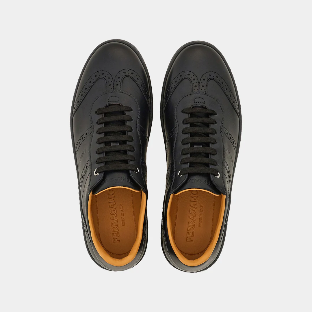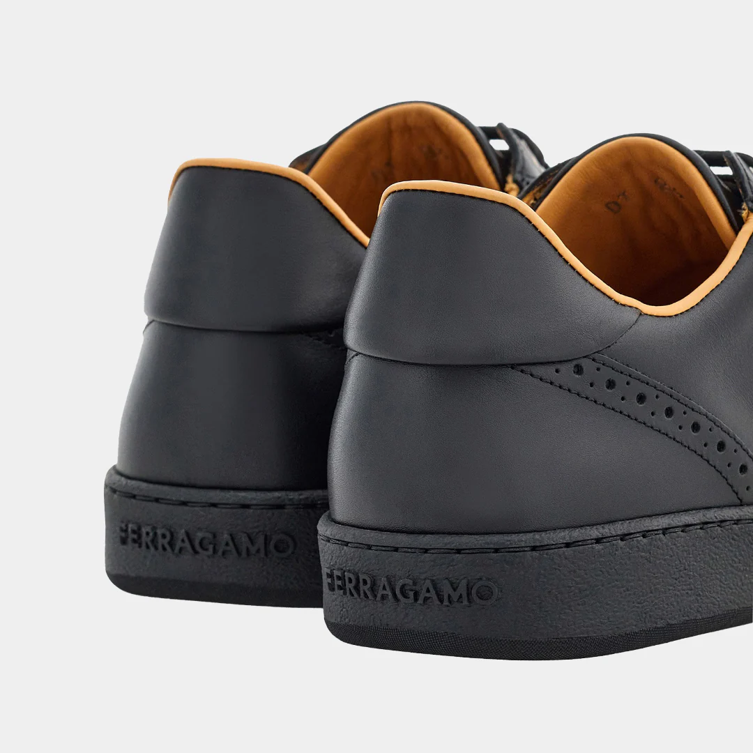 Los Achille Brog Low-Top Sneakers de Salvatore Ferragamo combinan la elegancia italiana con un diseño contemporáneo. Confeccionados en piel de becerro de alta calidad, presentan una silueta de corte bajo y detalles distintivos que los hacen ideales para un estilo casual sofisticado.