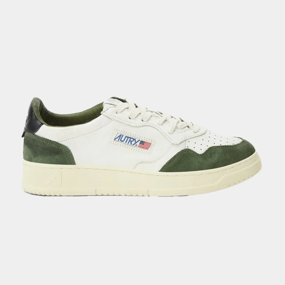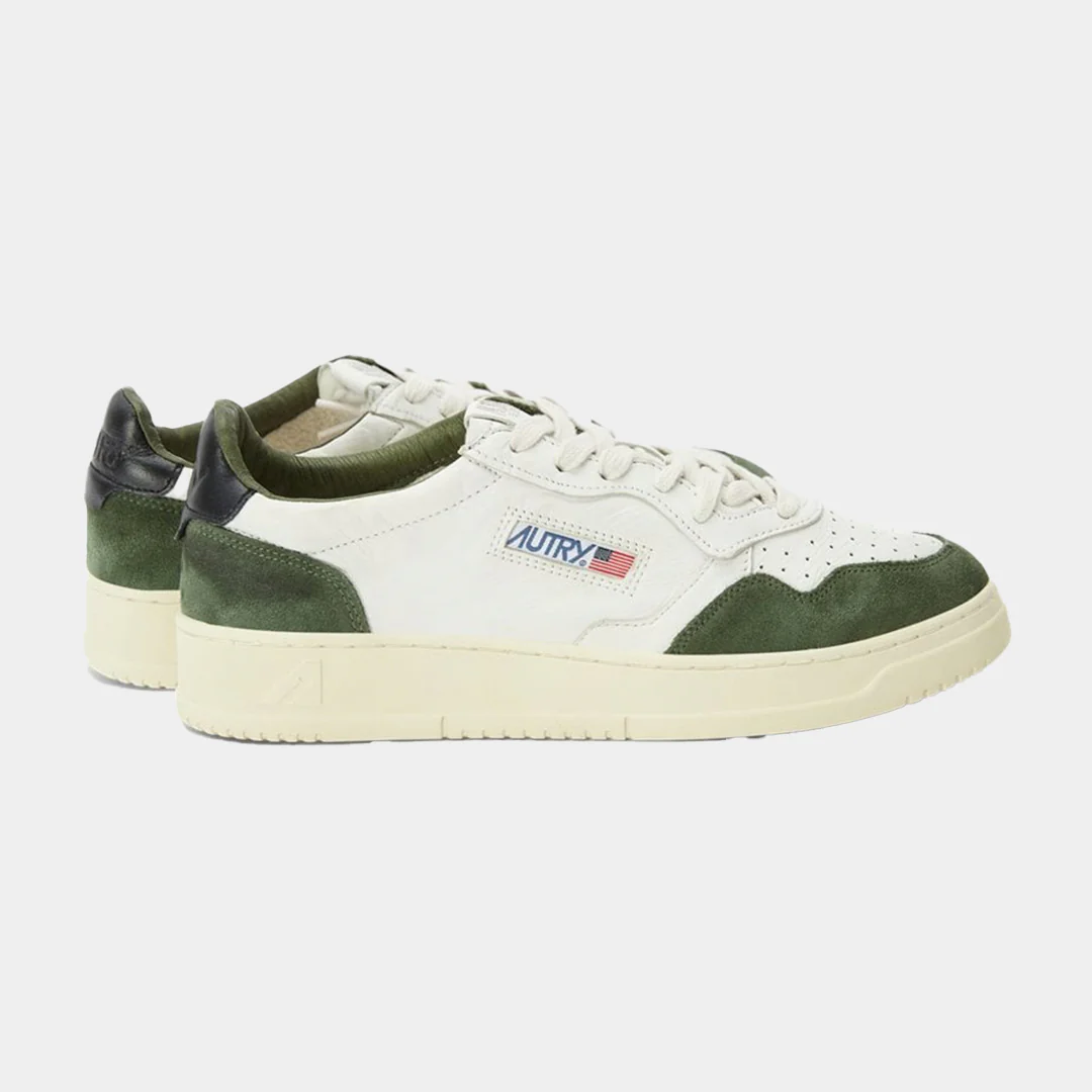 Los Tenis Autry Medalist Low para hombre en cuero de color Blanco y detalles en color Verde, son inspiradas en el tenis de los años 80, con un diseño vintage y atemporal reinterpretado con toques modernos. Estilo versátil y contemporáneo, ideal para combinar con atuendos informales. Empeine de piel de napa ultrasuave, con detalles en ante o lona seleccionada (dependiendo del modelo específico). Puntera con microagujeros para mayor transpirabilidad. Cordones planos de algodón. Suela de goma para mayor comodidad y agarre. Forro de rizo de algodón y piel, y plantilla de piel elevada para mayor comodidad.(A1UNAULMGS22)