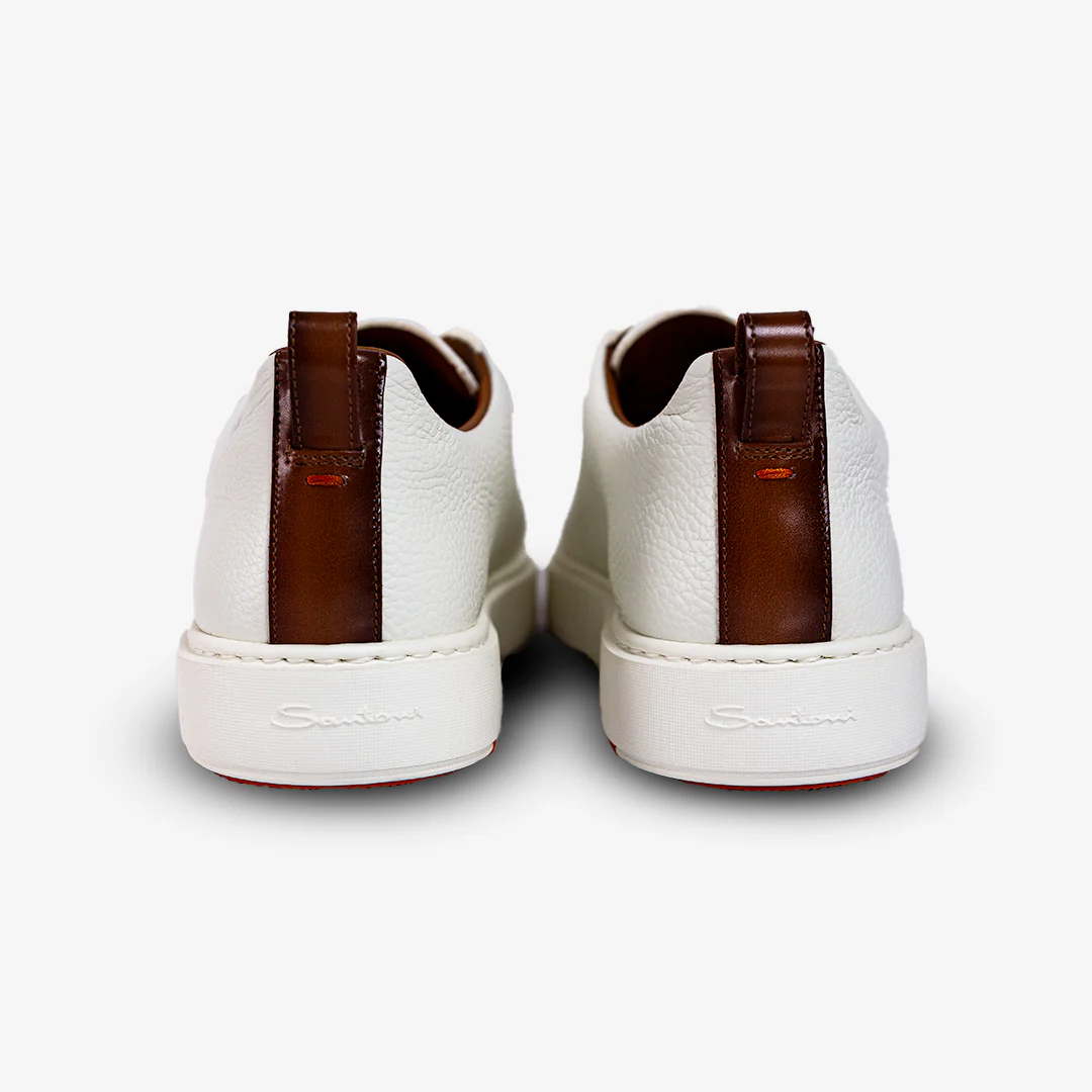 En el exclusivo universo de las zapatillas deportivas de Santoni, este modelo slip-on para hombre representa una síntesis perfecta de elegancia deportiva y calidad artesanal. Fabricadas en piel abatanada, están decoradas con una presilla y un detalle en el talón de piel degradada que demuestra la tradición de la firma en el tratamiento del color. La suela con caja de goma flexible garantiza el confort y la libertad de movimientos necesaria durante todo el día.