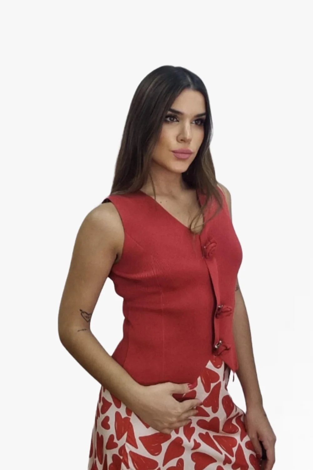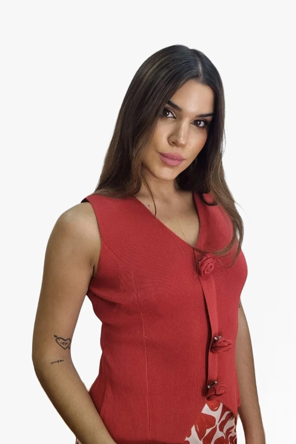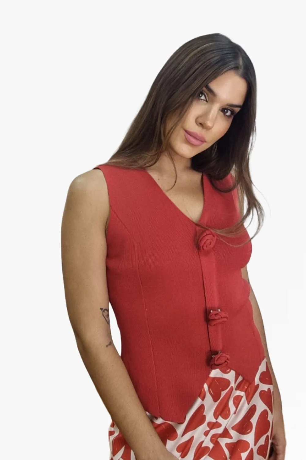 Top sin mangas, corte chaleco, con flores que se pueden quitar y poner.