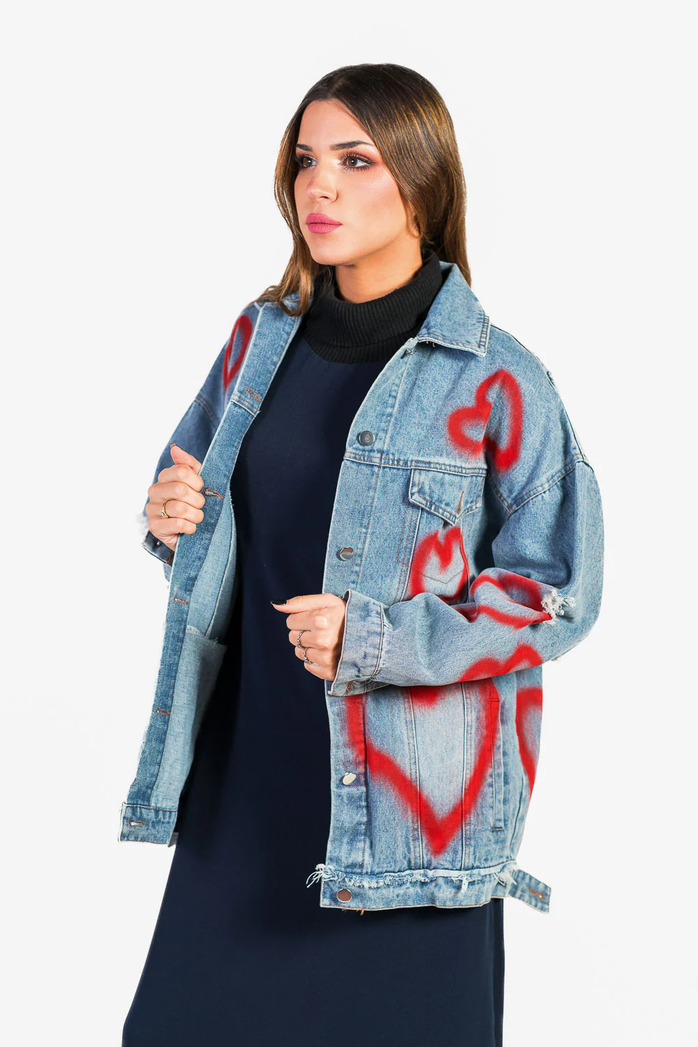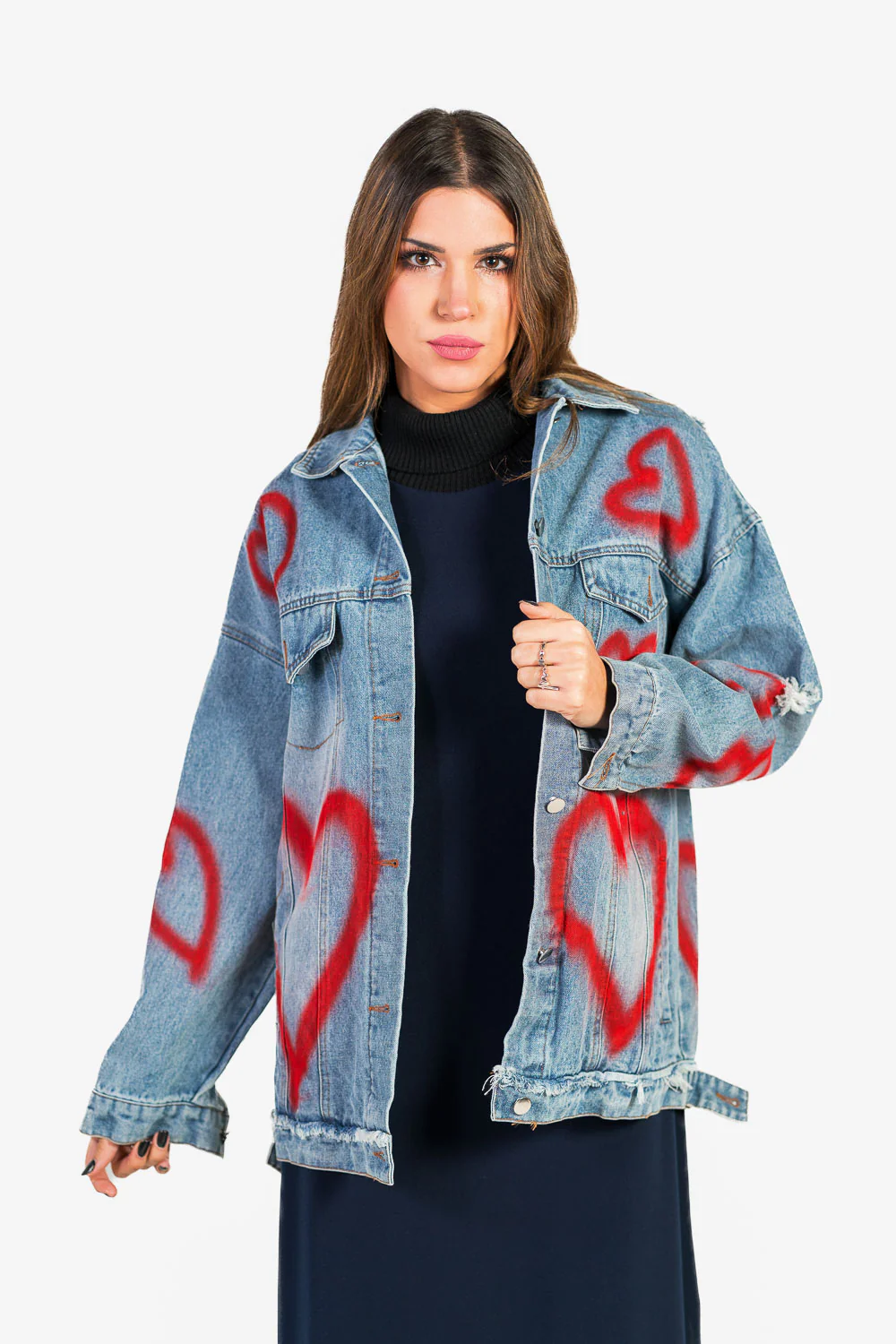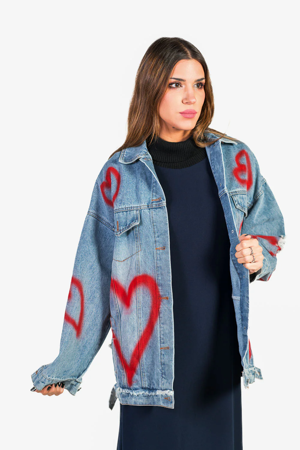 Chaqueta vaquera oversize con dibujo de corazón pintado efecto graffity.