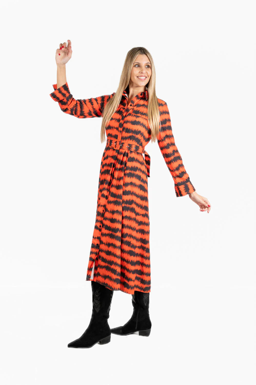 Vestido de manga francesa, escote asimétrico con cut out en cintura y apertura lateral. Detalle lazo en la cadera. Siéntete cómoda mientras luces espectacular.
