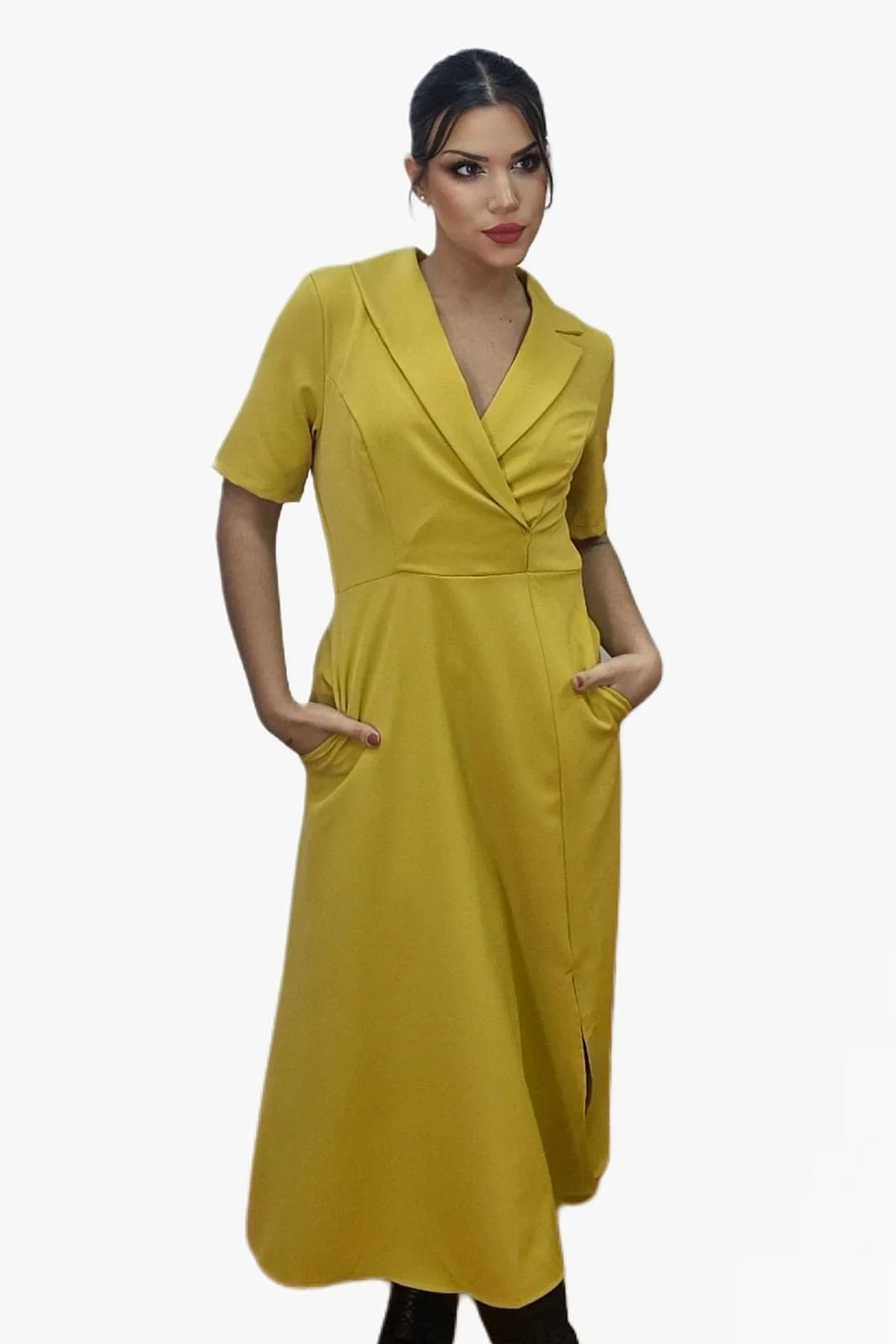 Este vestido camisero de corte midi combina comodidad y estilo en una prenda perfecta para el día a día o para ocasiones especiales. Con cintura elástica que se adapta a tu figura, bolsillos laterales y una favorecedora abertura en la pierna para un extra de movimiento y sofisticación. Incluye cremallera trasera oculta para un ajuste perfecto.