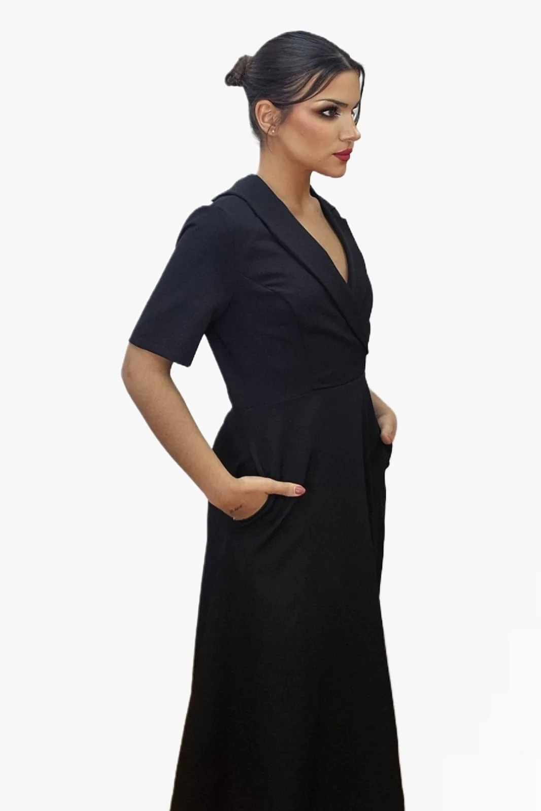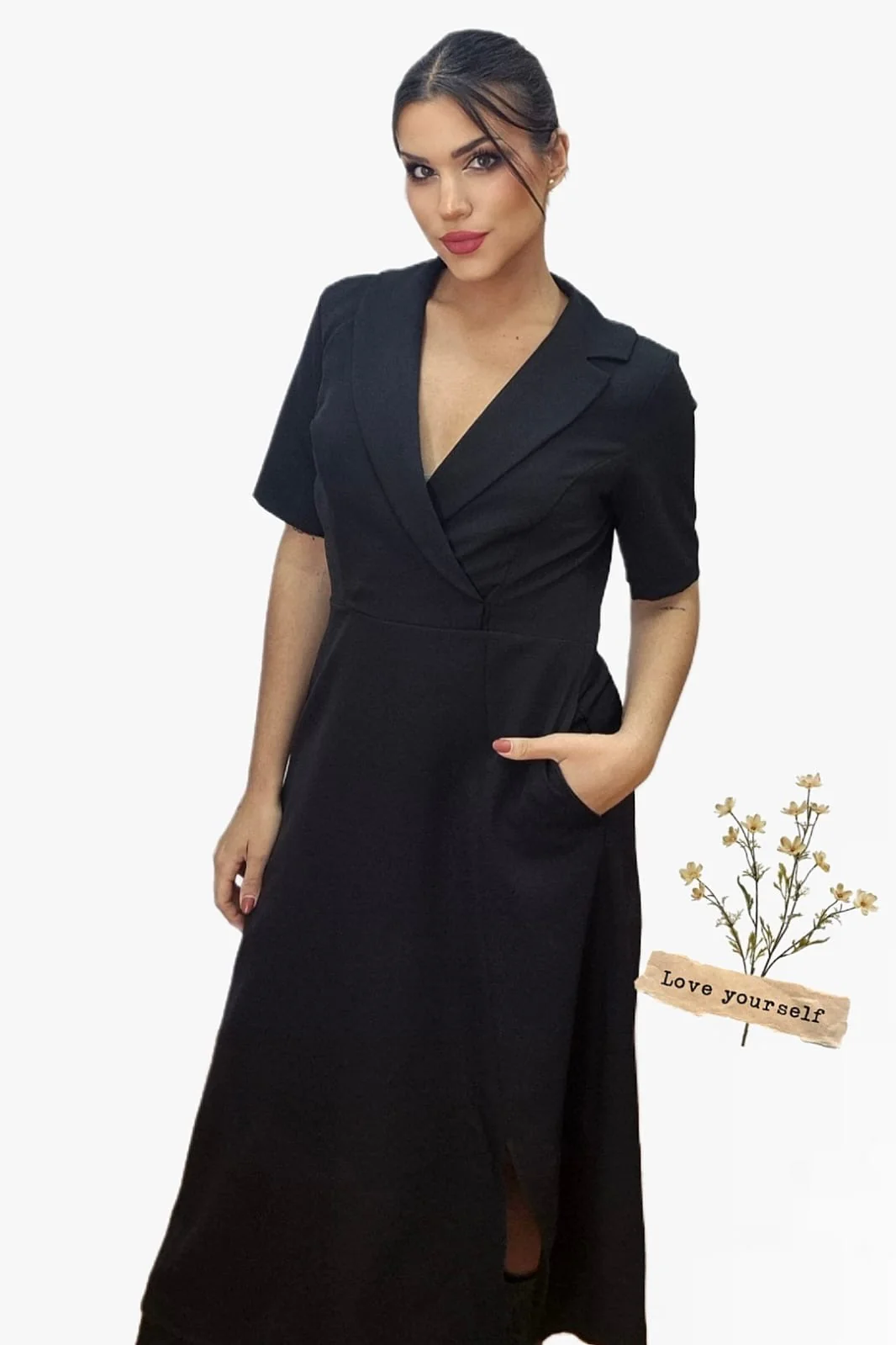 Este vestido camisero de corte midi combina comodidad y estilo en una prenda perfecta para el día a día o para ocasiones especiales. Con cintura elástica que se adapta a tu figura, bolsillos laterales y una favorecedora abertura en la pierna para un extra de movimiento y sofisticación. Incluye cremallera trasera oculta para un ajuste perfecto.