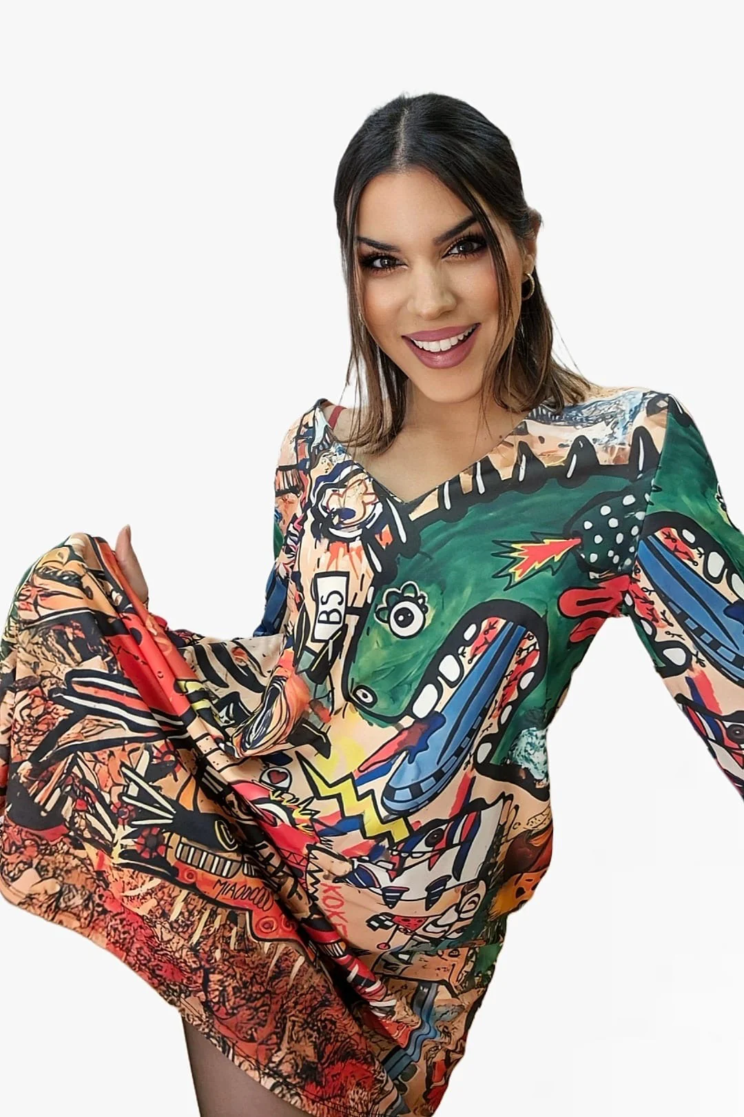 • La modelo mide 1,68 cm y en este vestido lleva la talla única